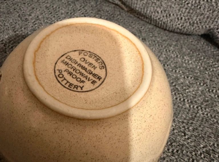 Lovely Fosters pottery bowl, safe for oven, dishwasher, and microwave use.
