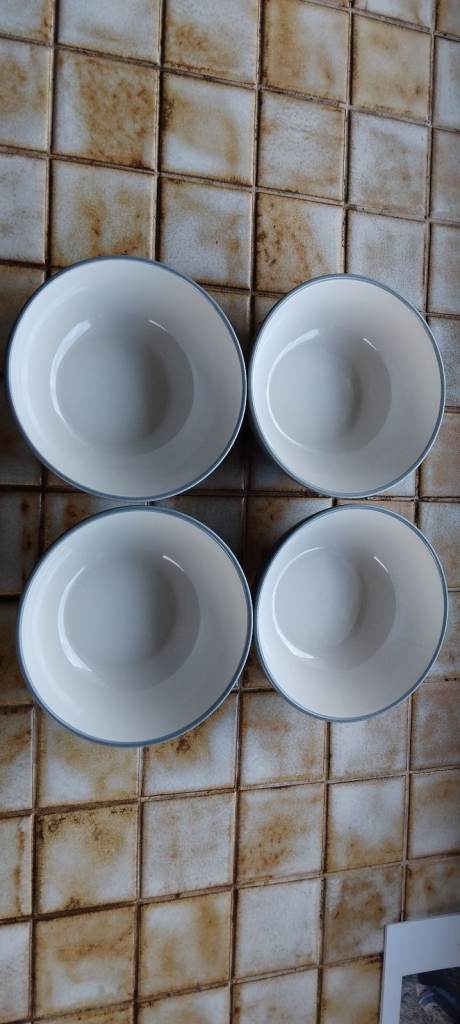 Fantastic modern 4 plates , 4 side plates and 4 bowl, one bowl has a hair line mark, the plates were only used once one! xmas and same for the side plates, the bowl were in continuous use, but good condition the bowl, plates like new! From Sainsbury's and cost £45 two years ago, having a clear out, as moving house or that's what iv been told £15 or make a reasonable offer, crossgar direction