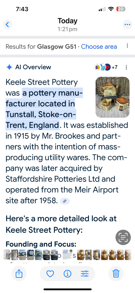 Keele street property was a pottery manufactured in Tunstall, Stoke on Trent.
