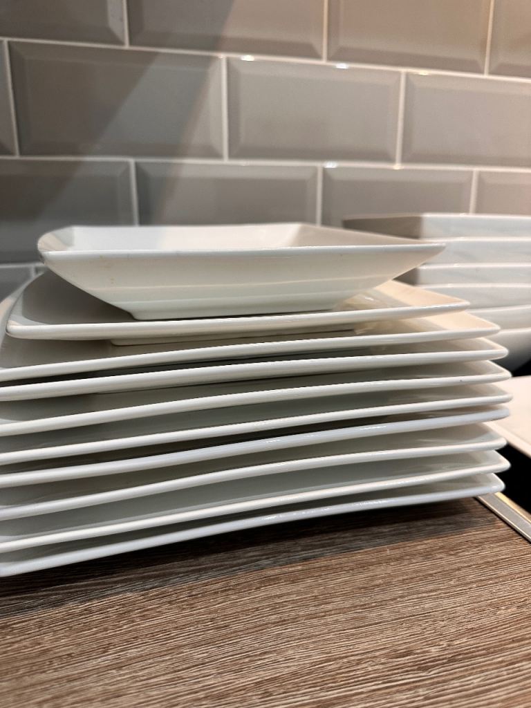 8 x square dinner plates - 25 x 25cm