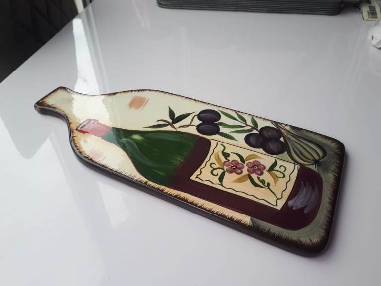 Pottery Ceramic Tile Cheese Cutting Board in a shape of a wine bottle - Rare