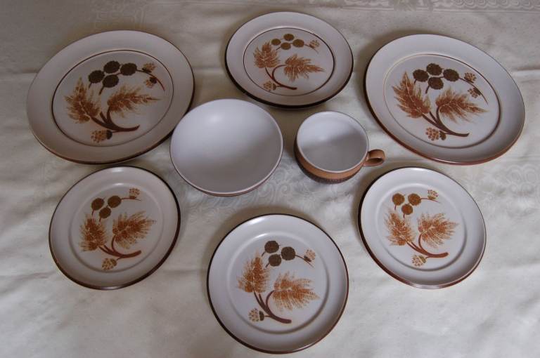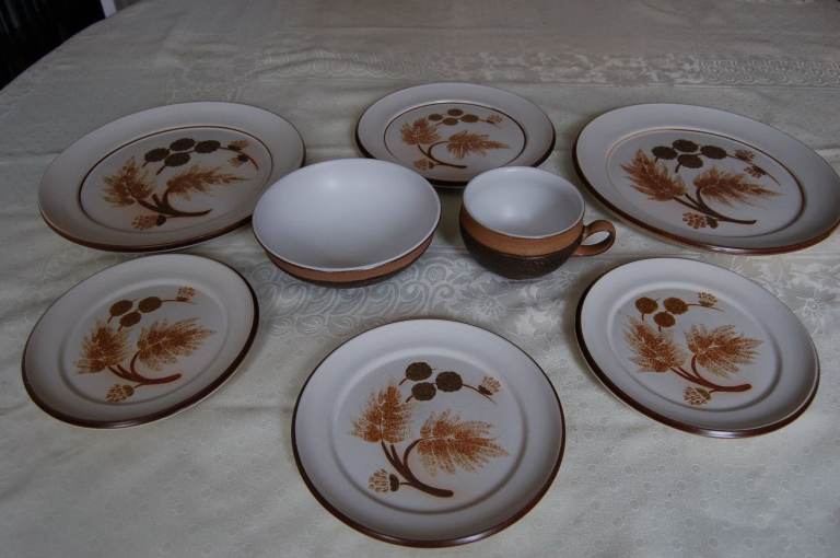 As the salad plate has a couple of very tiny chips in the brown rim, I am offering that as a freebie with the lot for £18. The cup is just like the mug shown, but shorter.