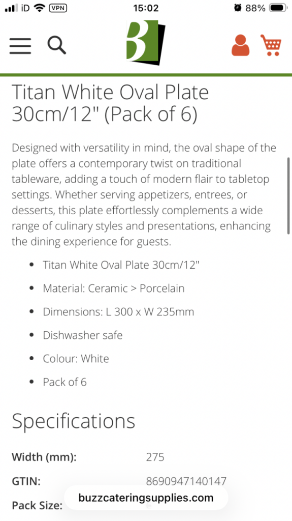 Titan white oval plate, 30 cm