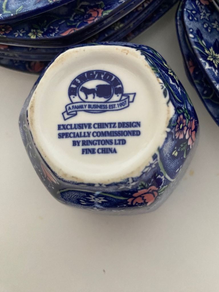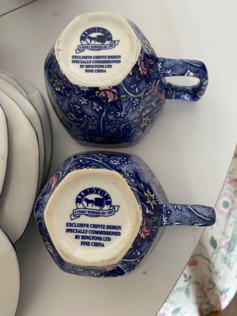 The Ringtons 6 Piece Tea Set in Chintz is a charming addition to any tea lover's collection. With a mix of vintage pieces by James Sadler, this set features a beautiful chintz pattern in a glossy finish ceramic. The set includes 8 oz teacups and one medium and small sized teapots perfect for all occasions. Care instructions recommend hand washing
