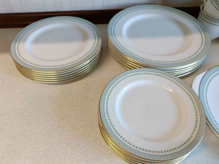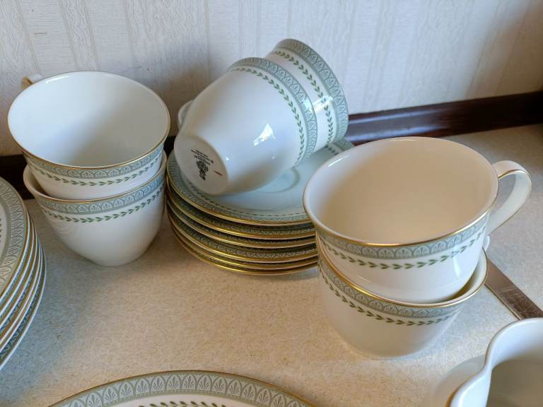 A finwe bone china dinner service comprising sets of 6, cup/saucers, dinner plates, side plates, bowls, milk jug, sugar bowl.