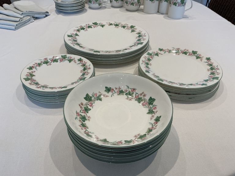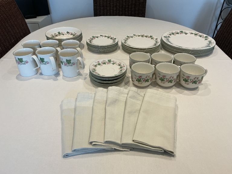 Beautiful Royal Doulton Tiverton Expression dinner service- 6 place settings + cream cotton tablecloth and 6 matching napkins