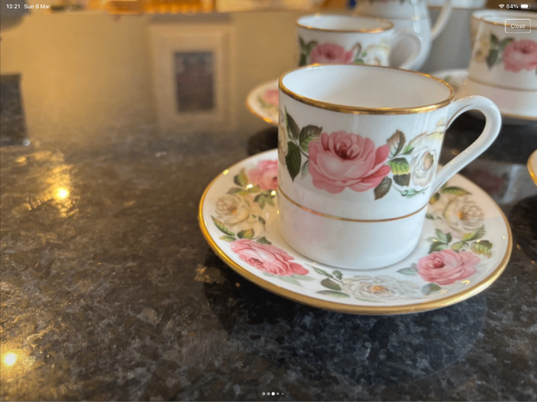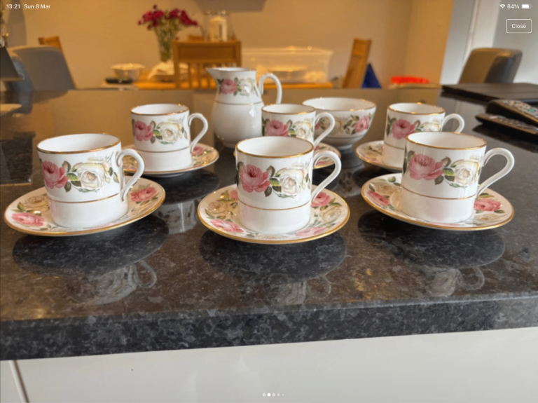 Posting for 8+ yearsRoyal Worcester Elgar garden sent of 6 coffee mug cup and saucer with milk jug and sugar bowl