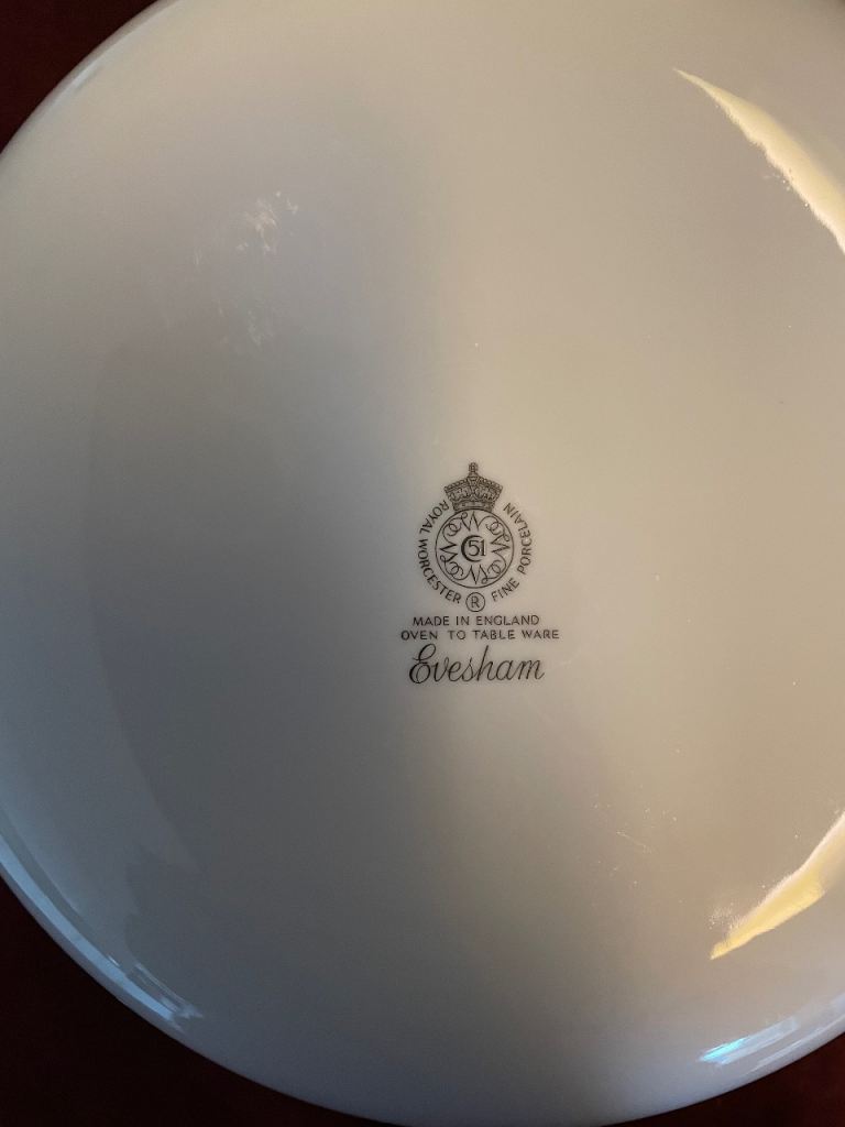 The Royal Worcester Evesham Gold is a classic, collectible English bakeware featuring vibrant fruit patterns with a distinctive gold rim, made from durable, oven-safe fine porcelain, ideal for both baking and serving, Made in England
