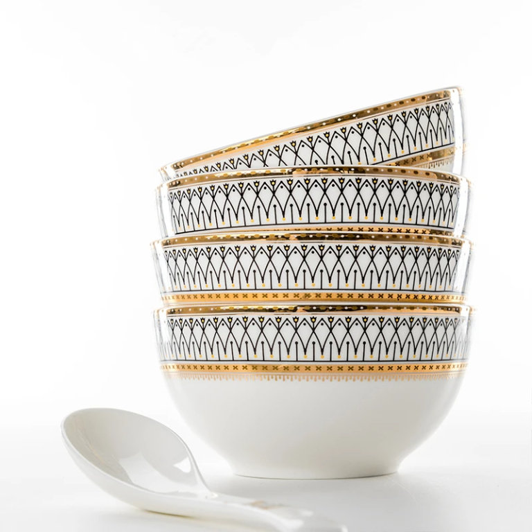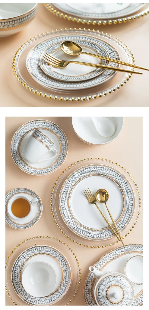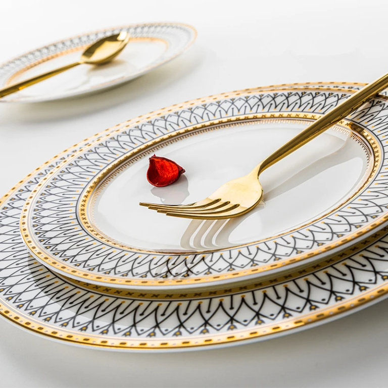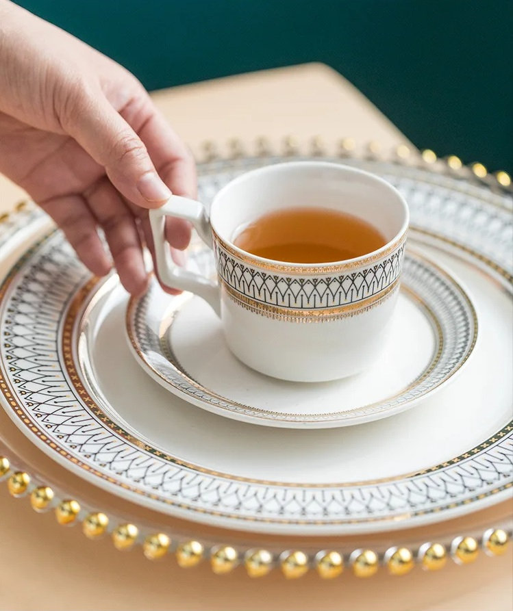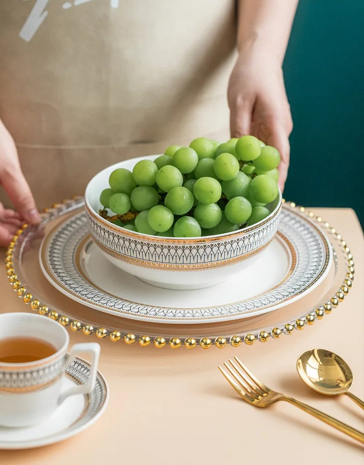 Crafted with precision and finesse, each piece showcases a mesmerizing design that seamlessly blends modern aesthetics with timeless elegance. The golden edges add a touch of glamour, transforming your table into a showcase of refined taste and style.