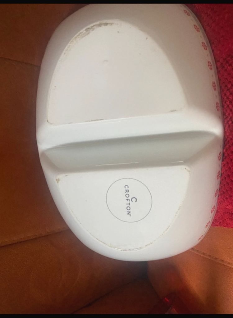 Serving dish in two sections ideal for snacks and nibbles. A perfect addition to any serve wear. In excellent condition no chips and is quite heavy surplus.