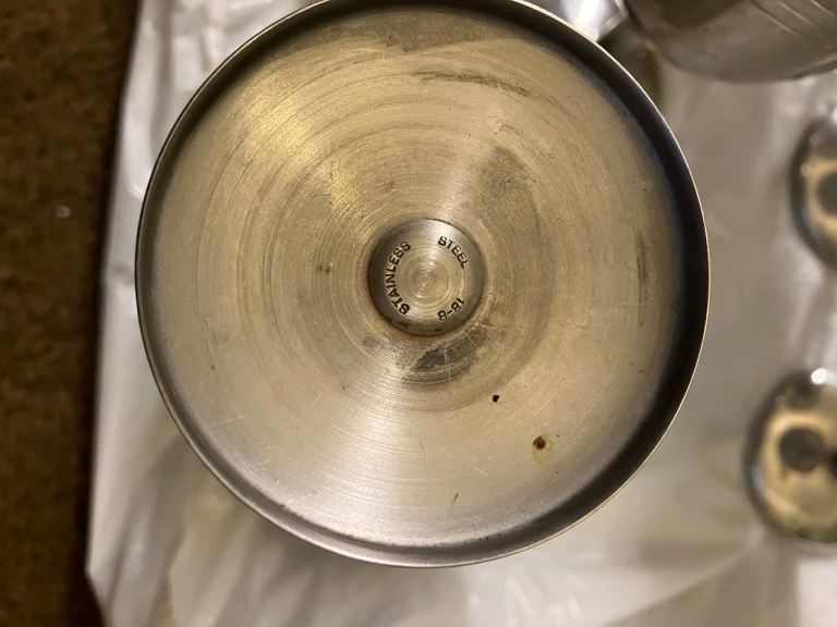 Set of 7 Stainless Steel Vintage Wine Goblets.
