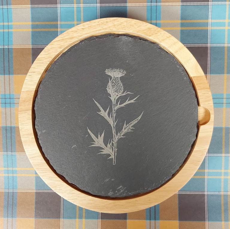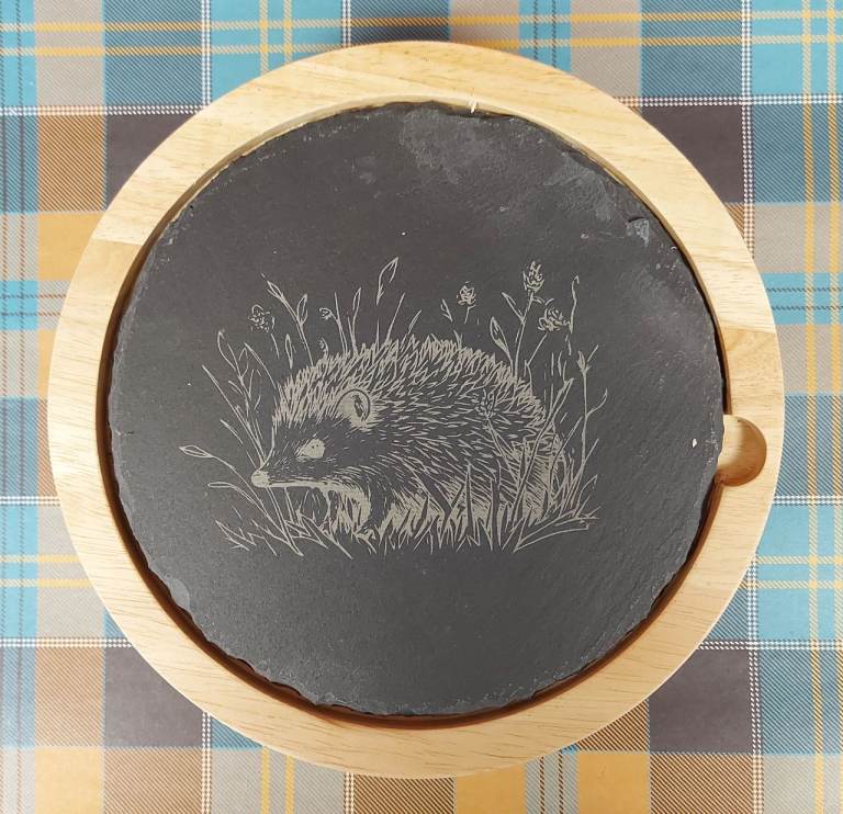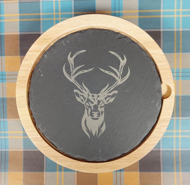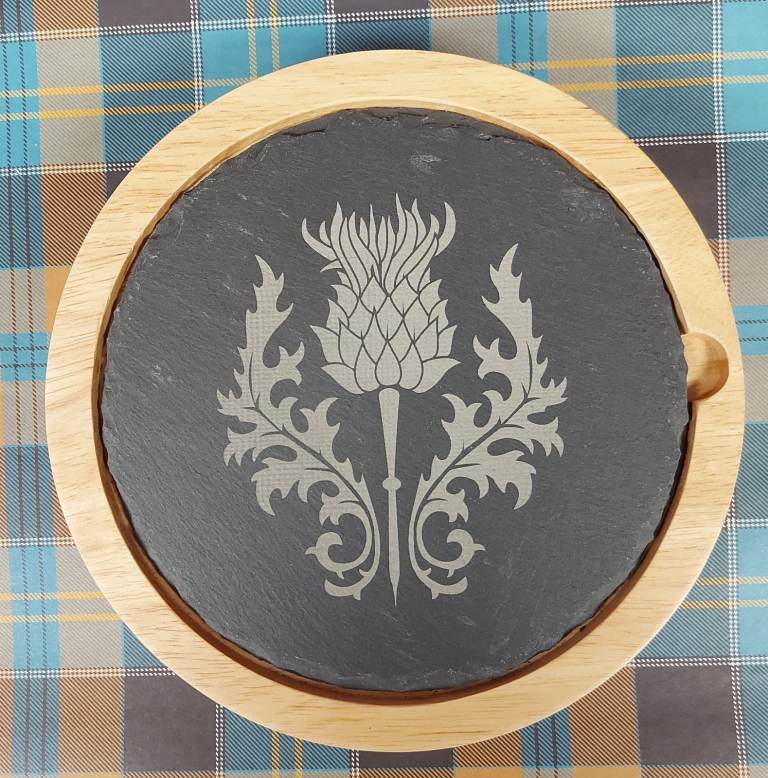 Slate Top Cheese Board With Knives and Laser Engraved Design