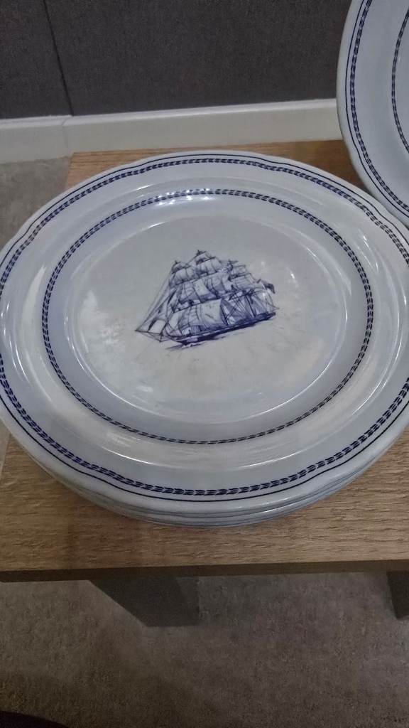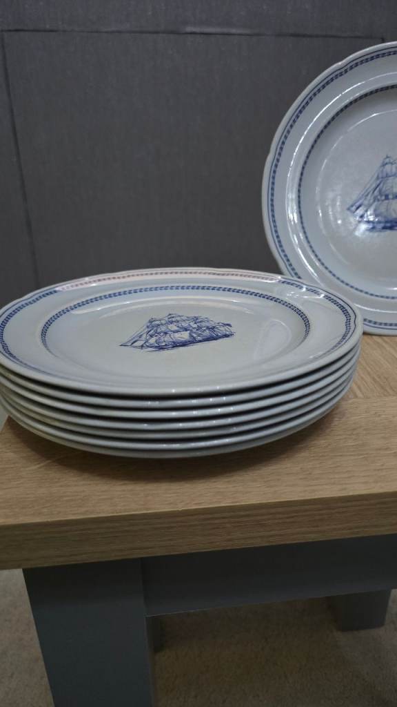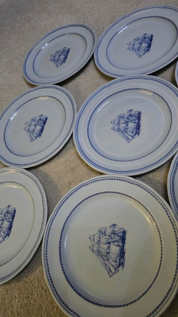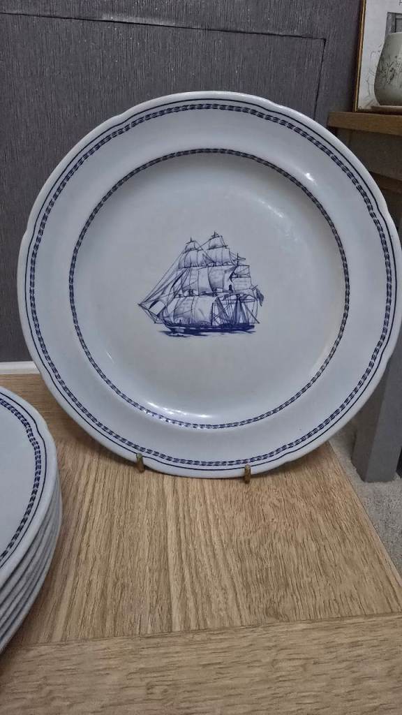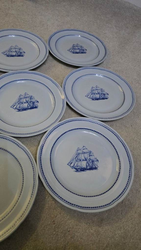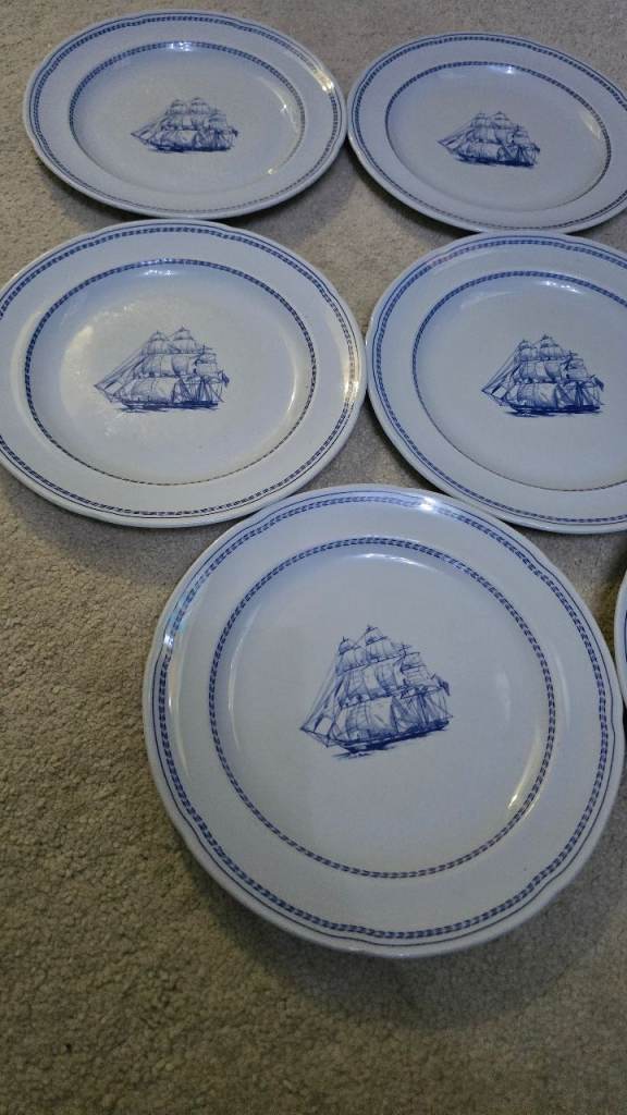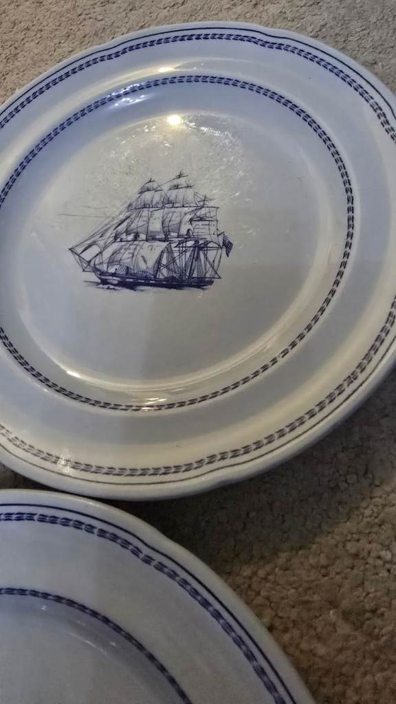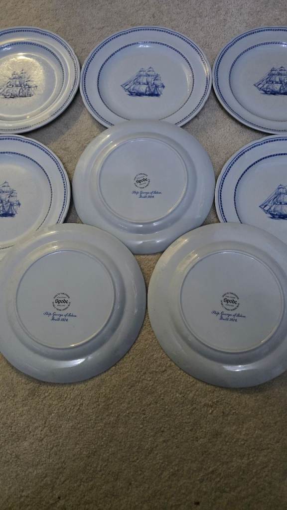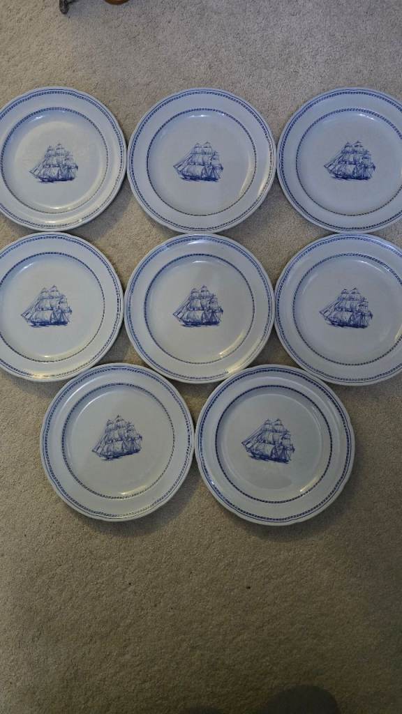 Posting for 1+ monthsSpode Trade Winds Blue Ship George of Salem Plates set of 8x