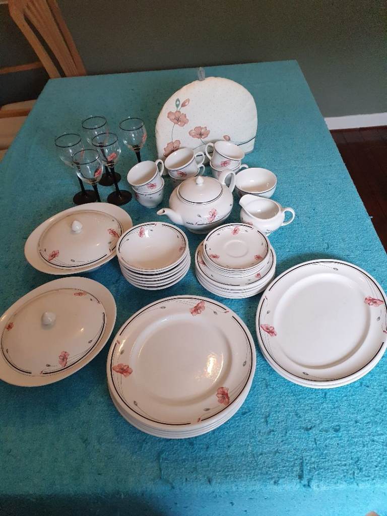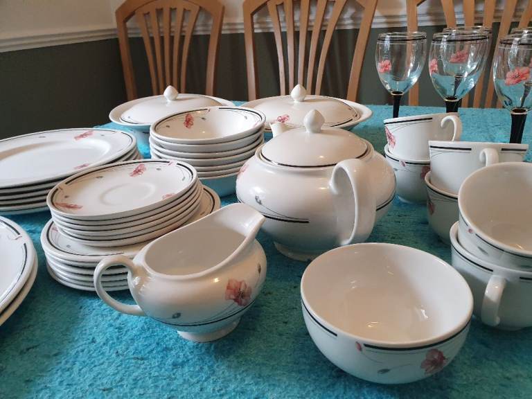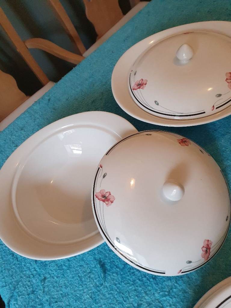 Includes large plates, side plates, fish plates, serving dishes with lids x2