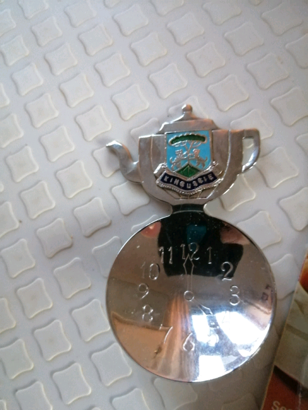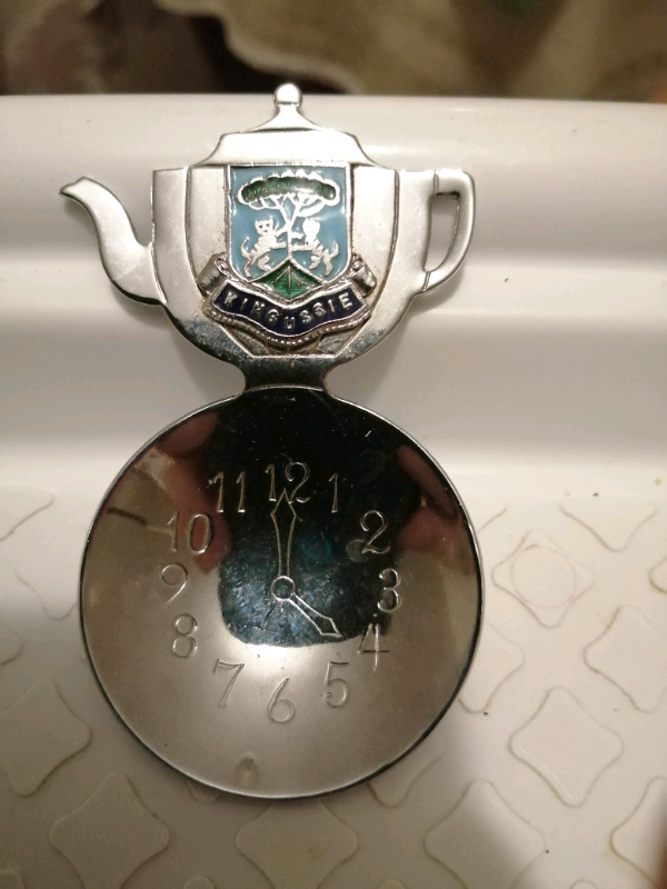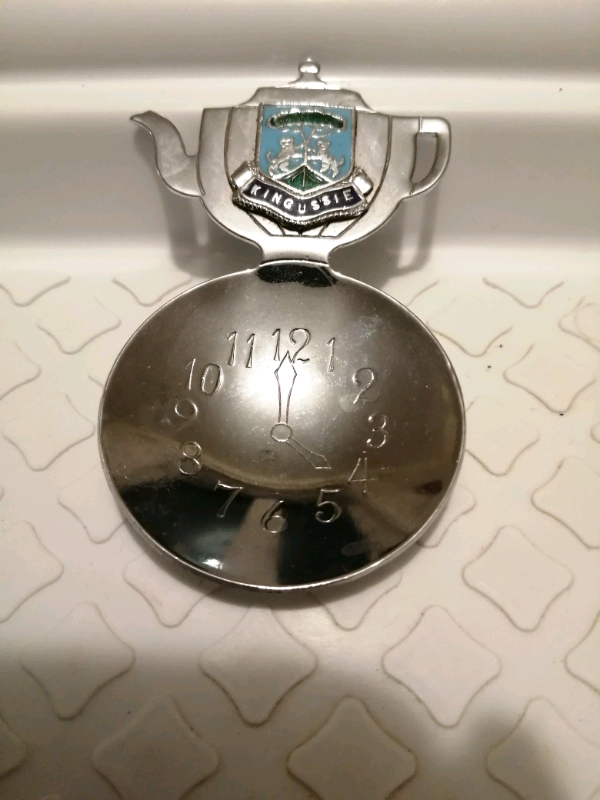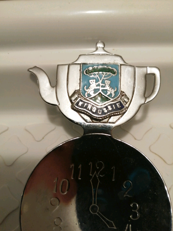A tea caddy spoon chrome as new. Coat of arms reads Kingussie.
