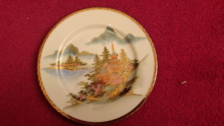 Japanese China teaset. Teapot, sugar bowl, milk jug, three of each cups, saucers and plates