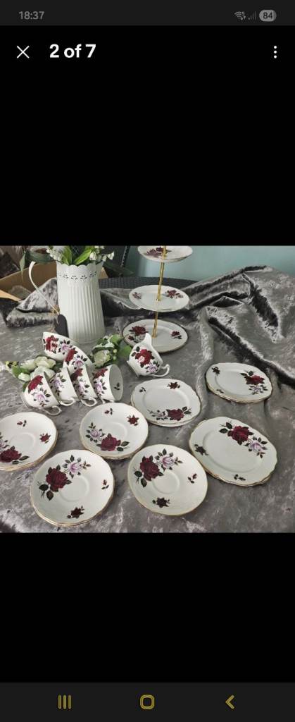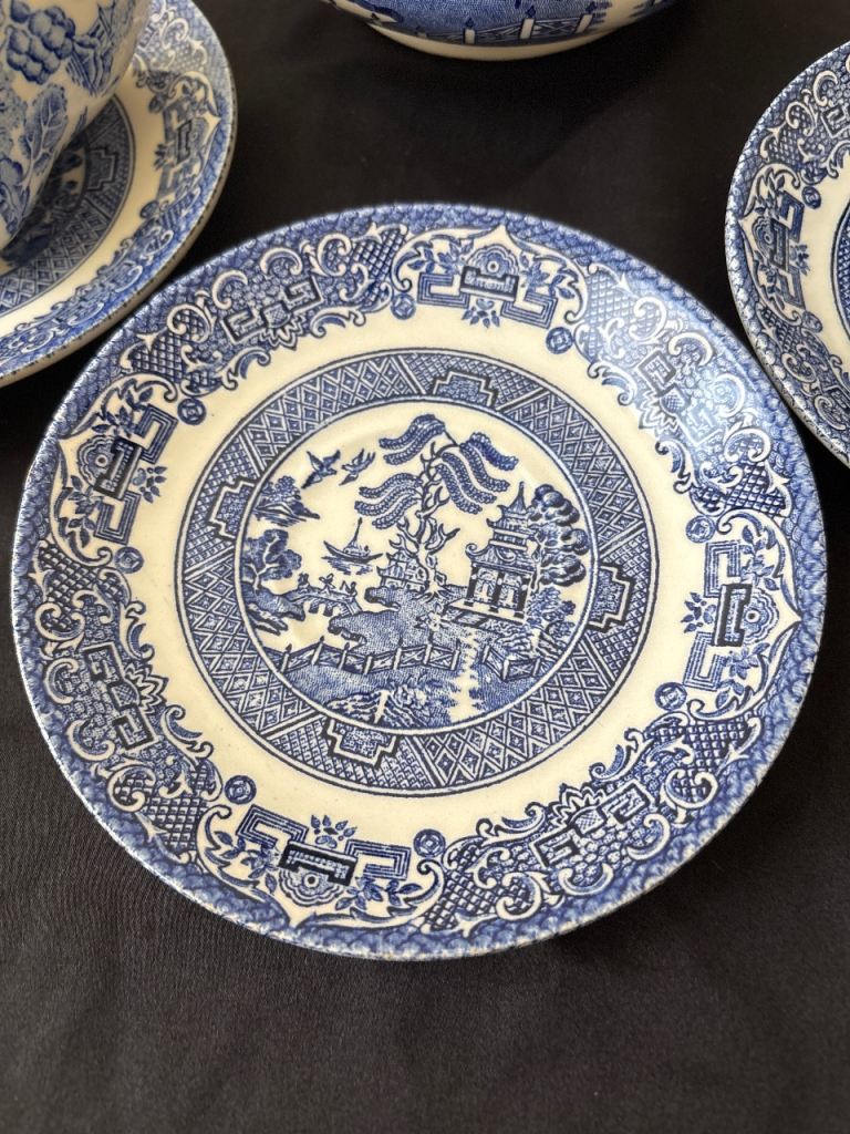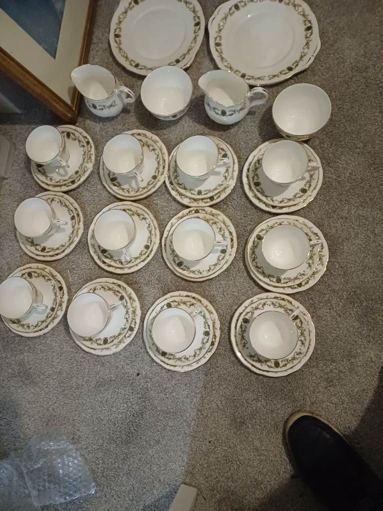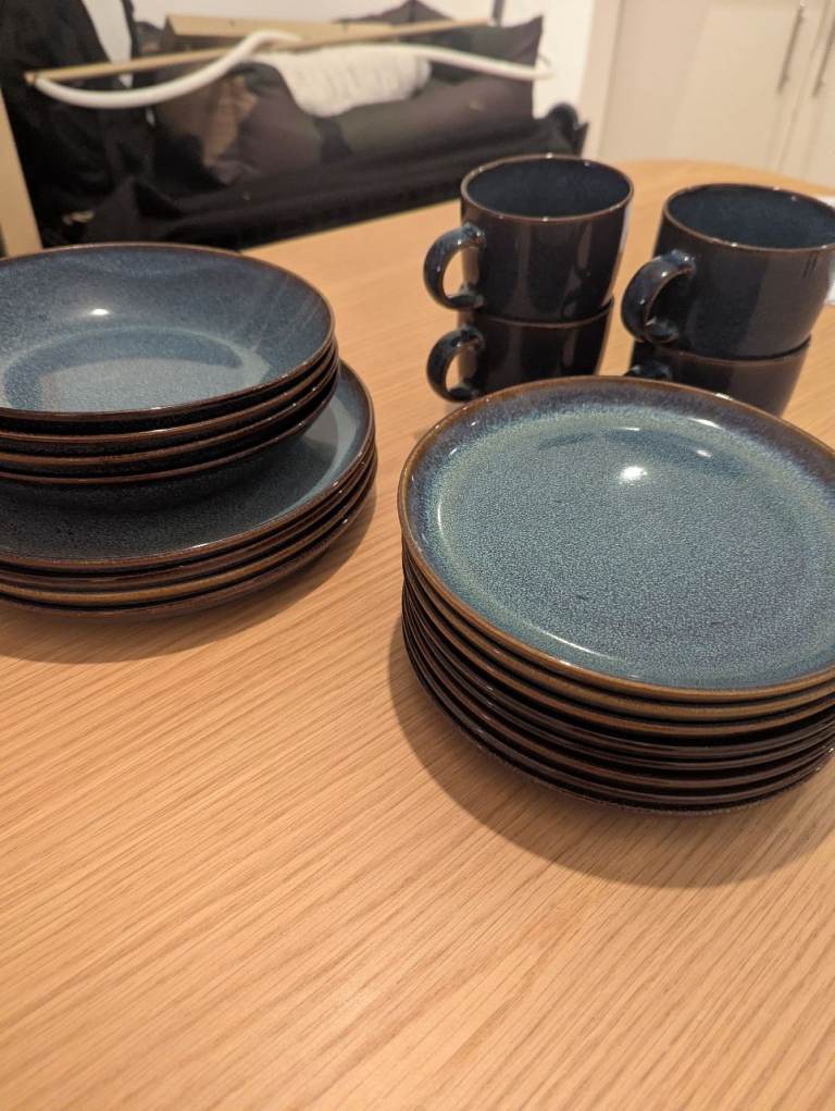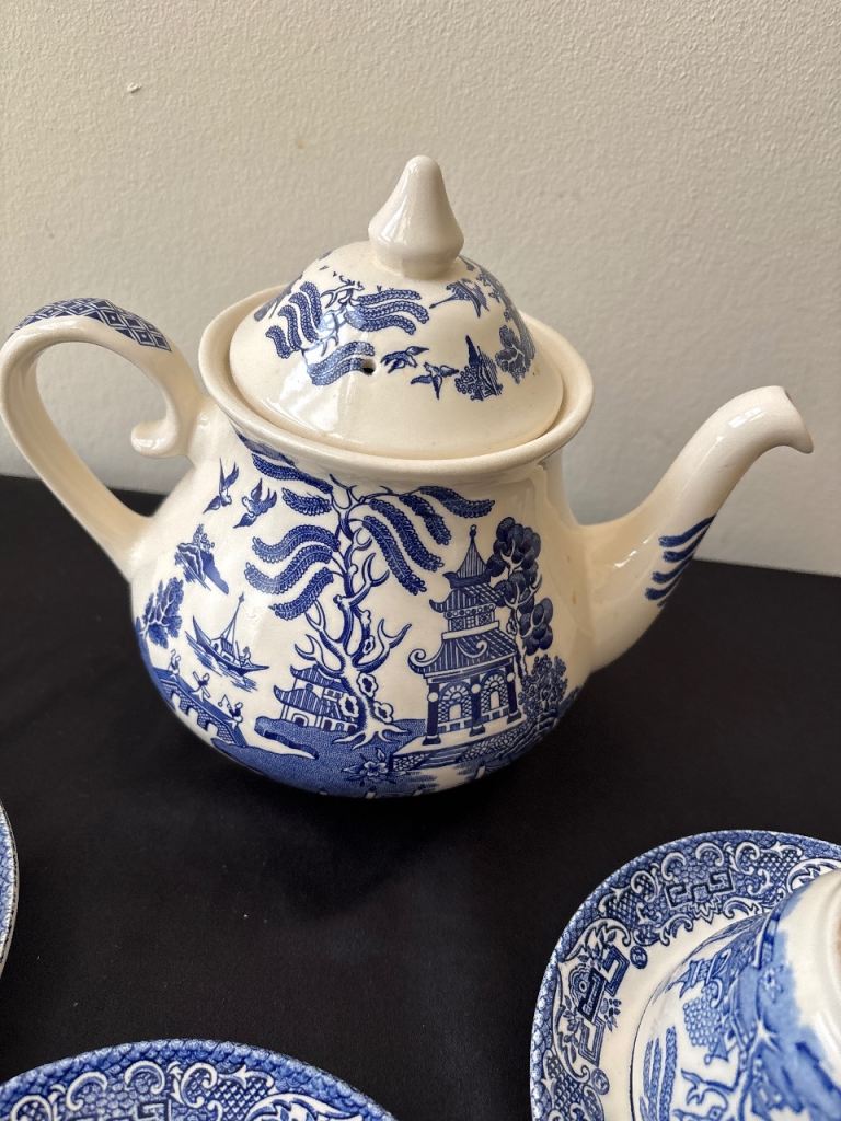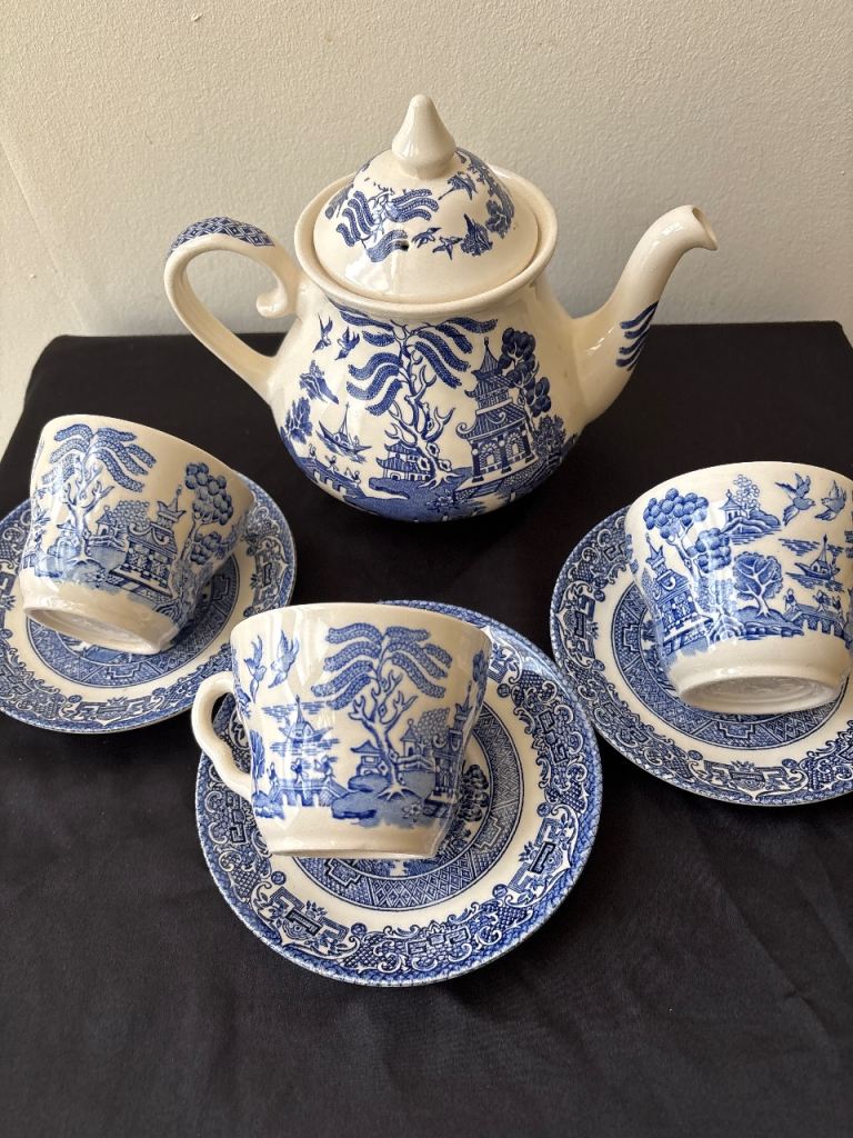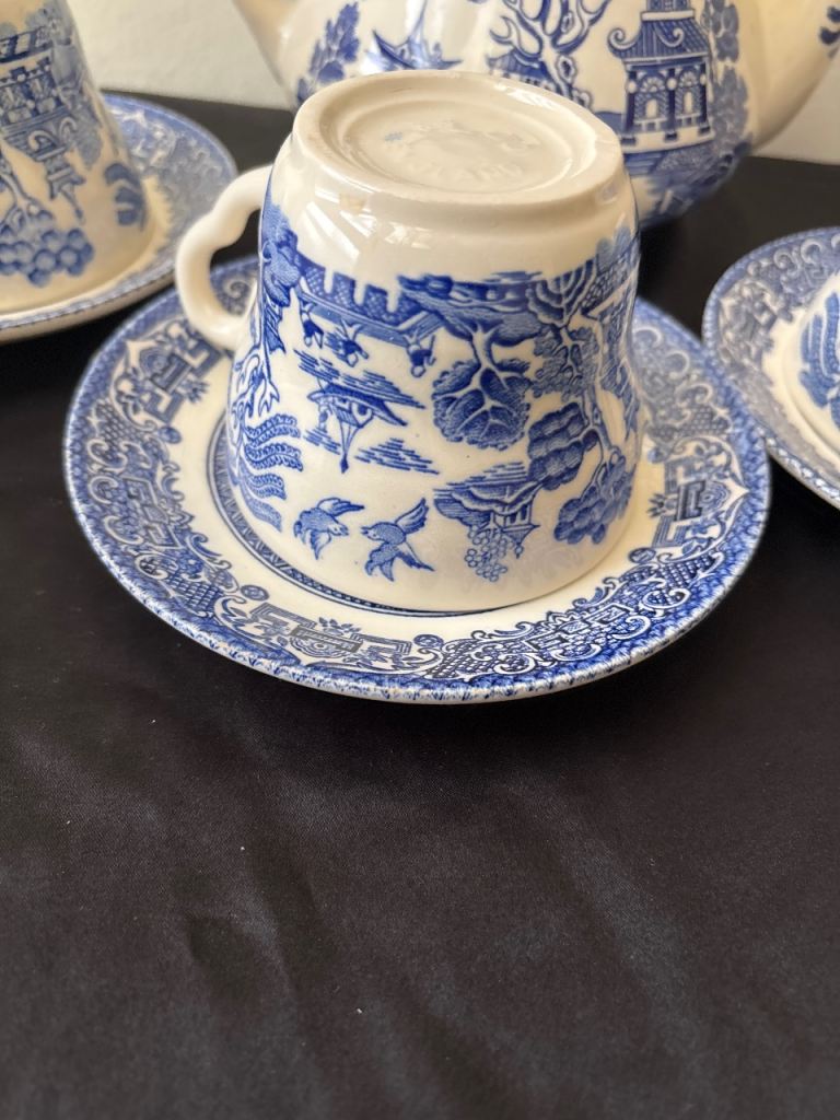 Teapot & cups & saucers blue design as in pics used couple of times no chips or cracks buyer collects