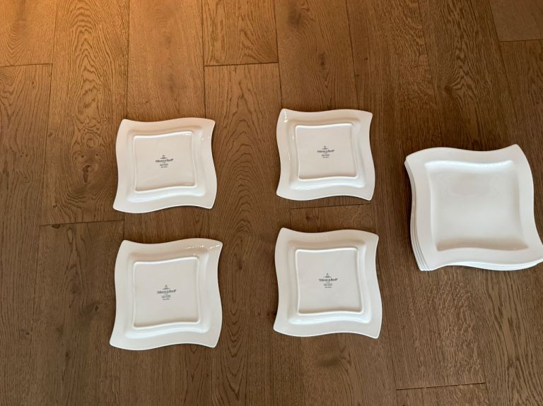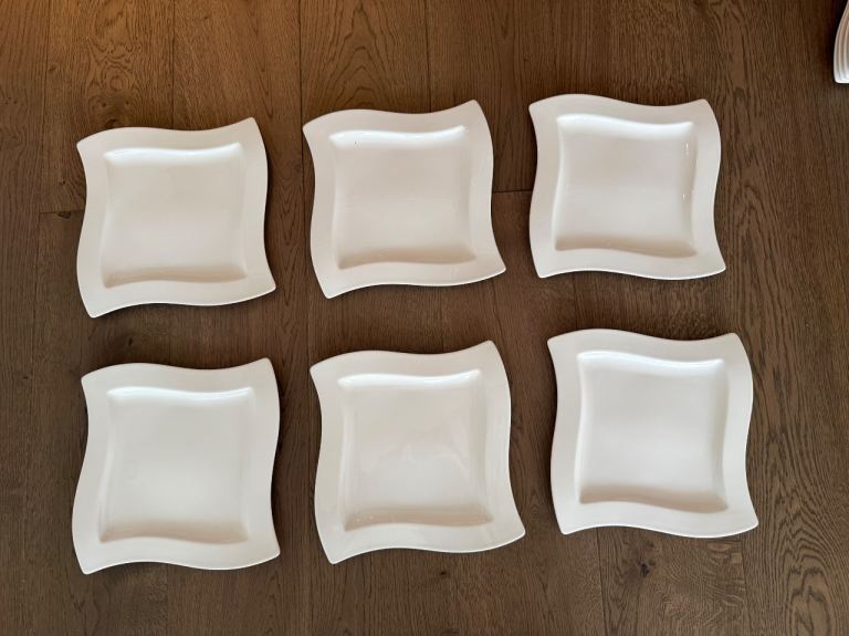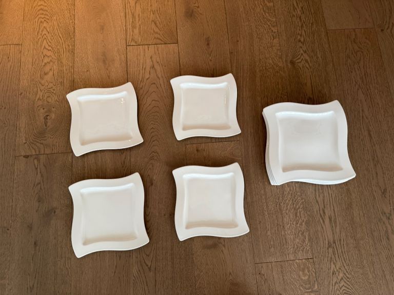 Posting for 12+ yearsVilleroy & Boch New Wave Square Plates – White Set of 12 (6 Large + 4 Small)