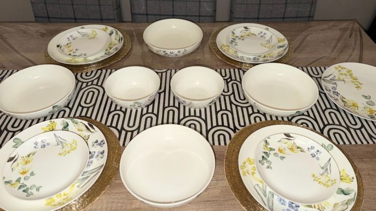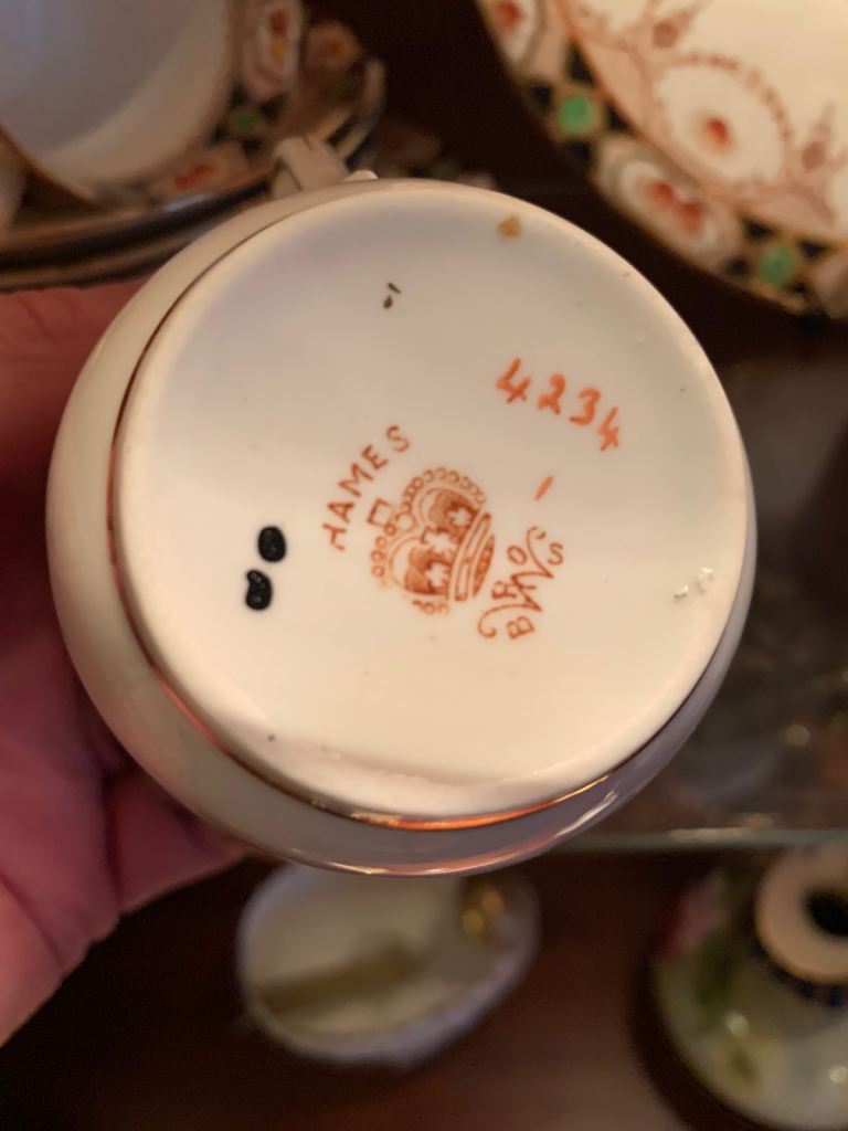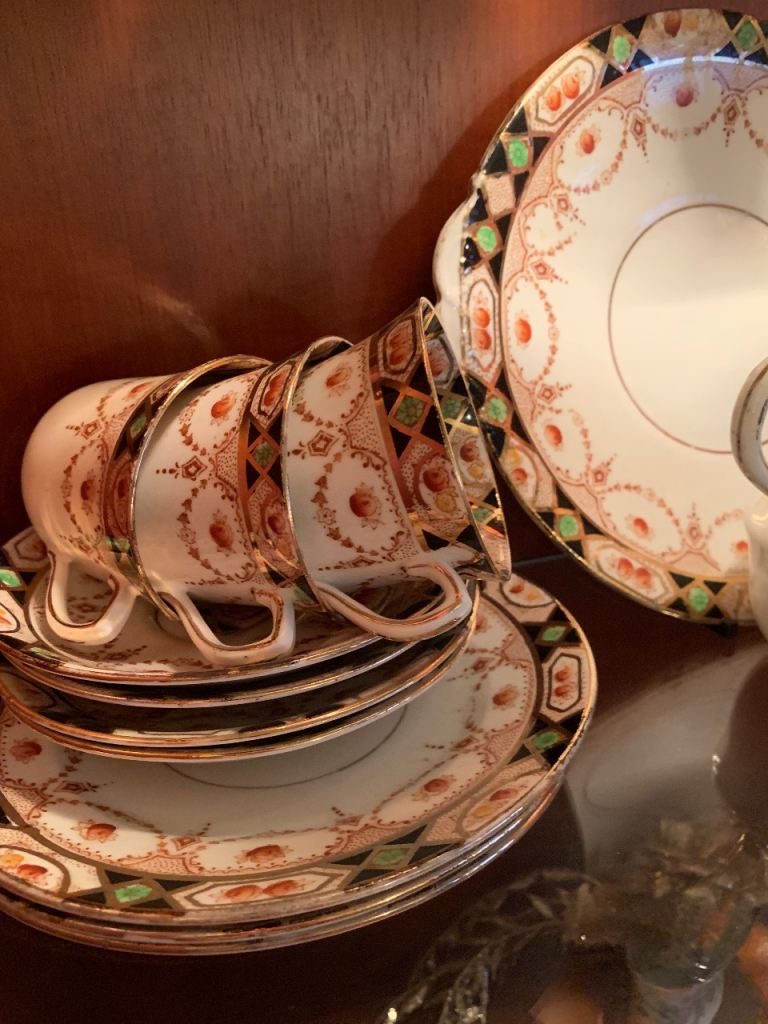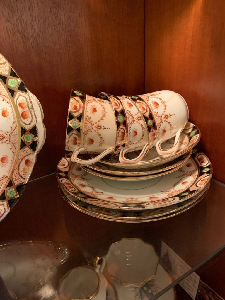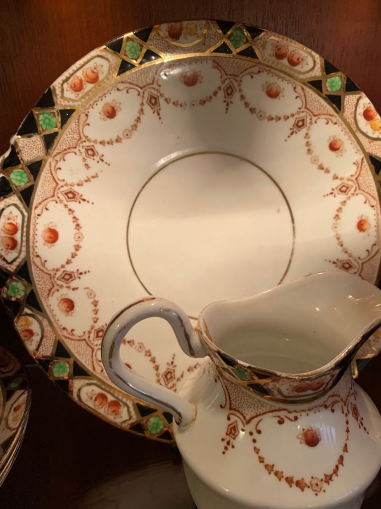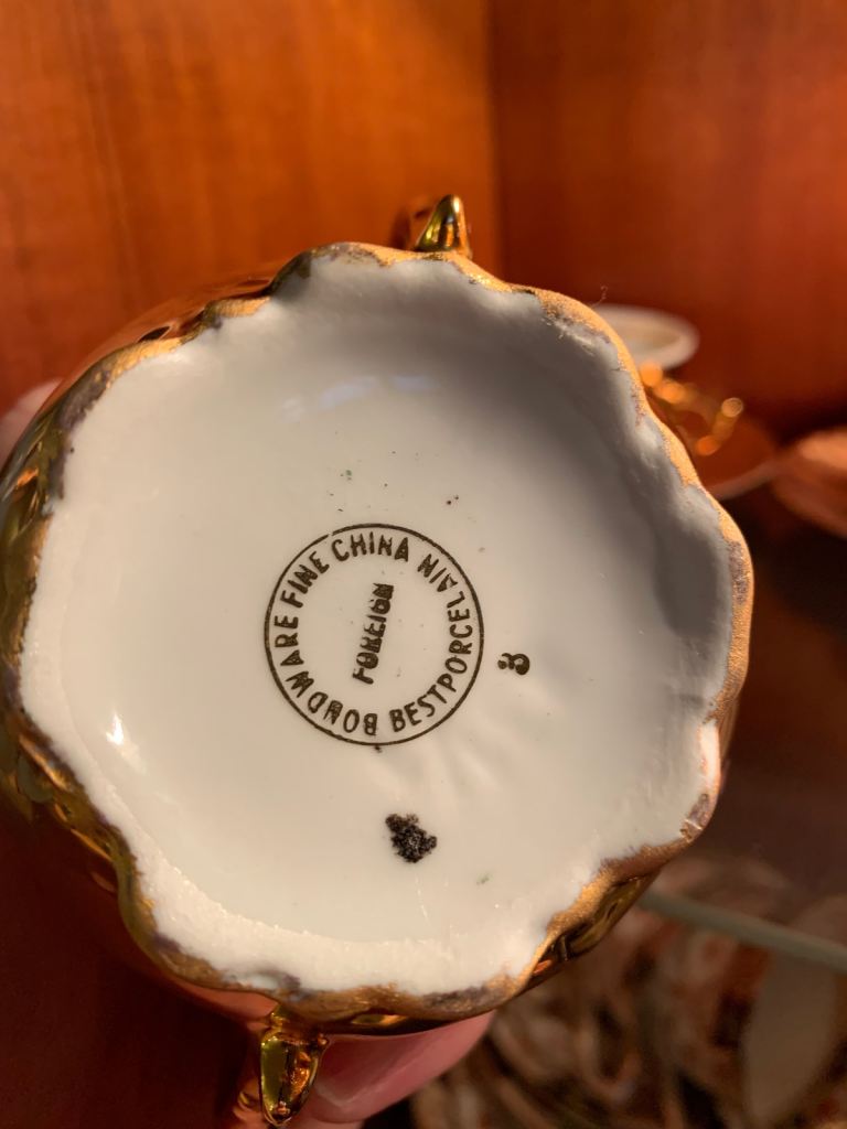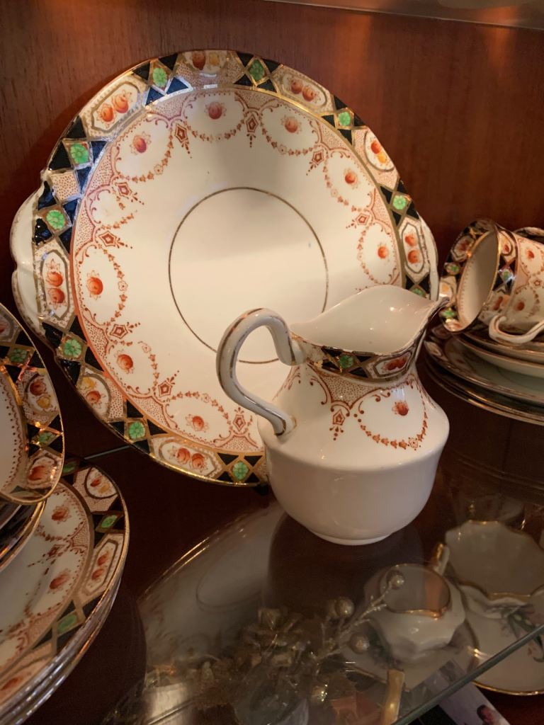 Lovely Bestporcel Bondware tea set, featuring cups, saucers, and a creamer.