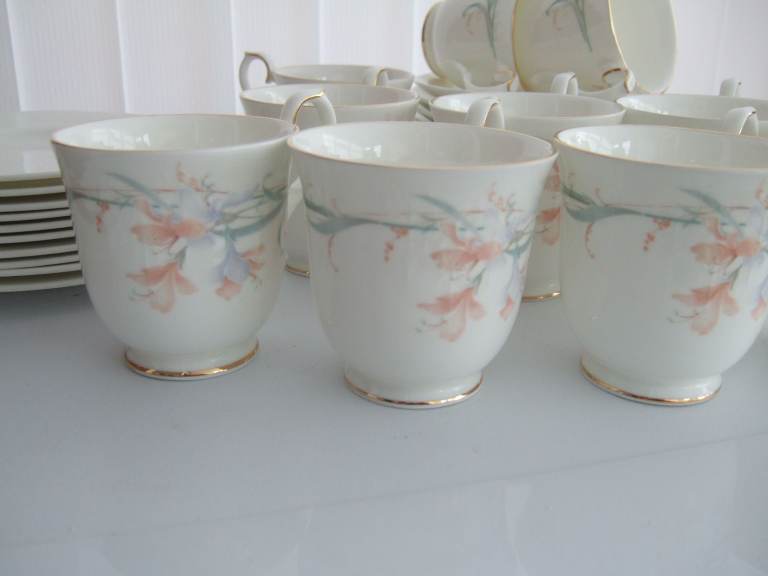 10 sets of Cups, Saucers and Plates. No damage, never washed in dishwasher.