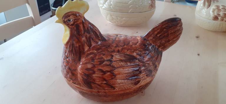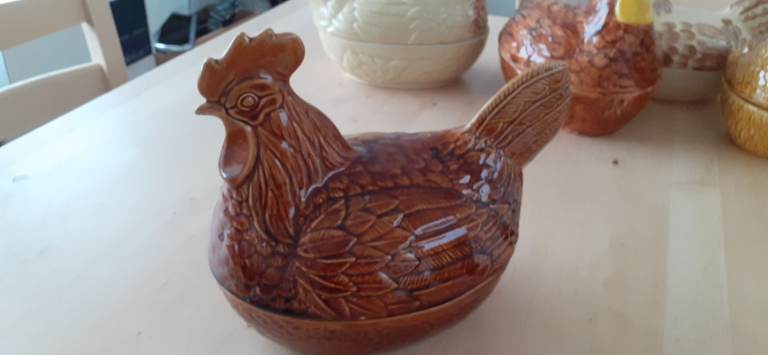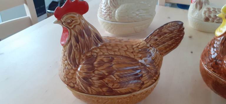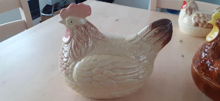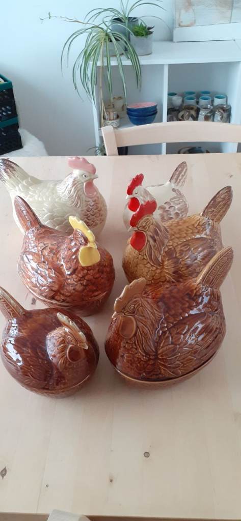Collection of 6 vintage ceramic chicken egg holders. 5 are made by Price, 1 marked made in Japan. Excellent condition, no chips.