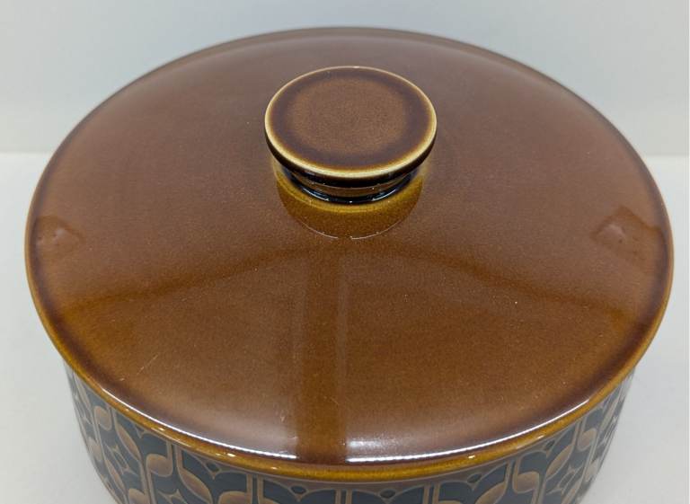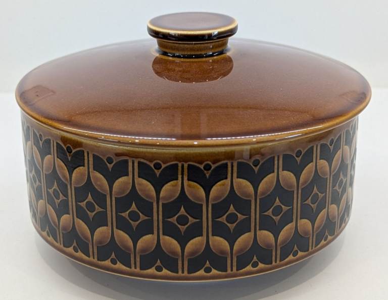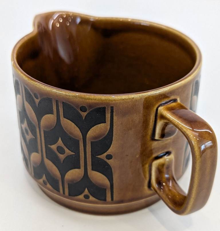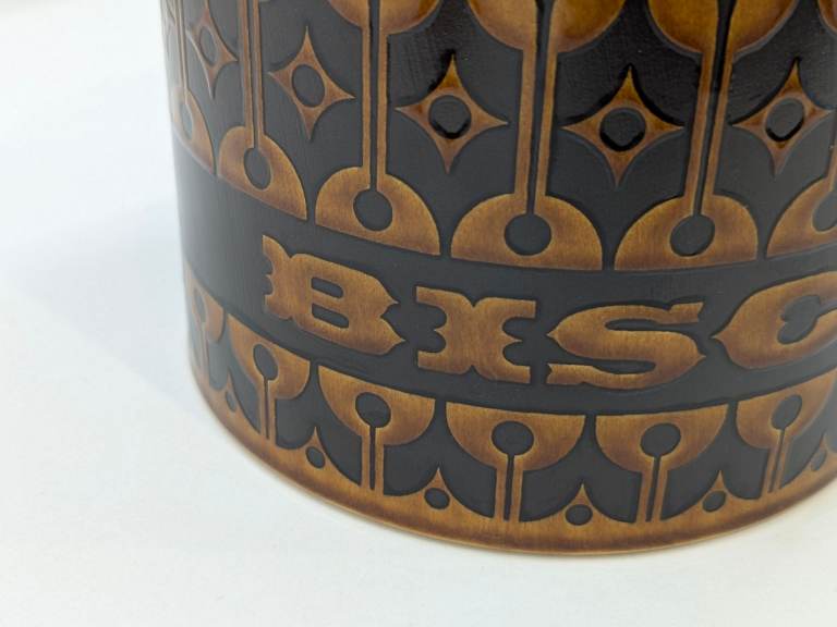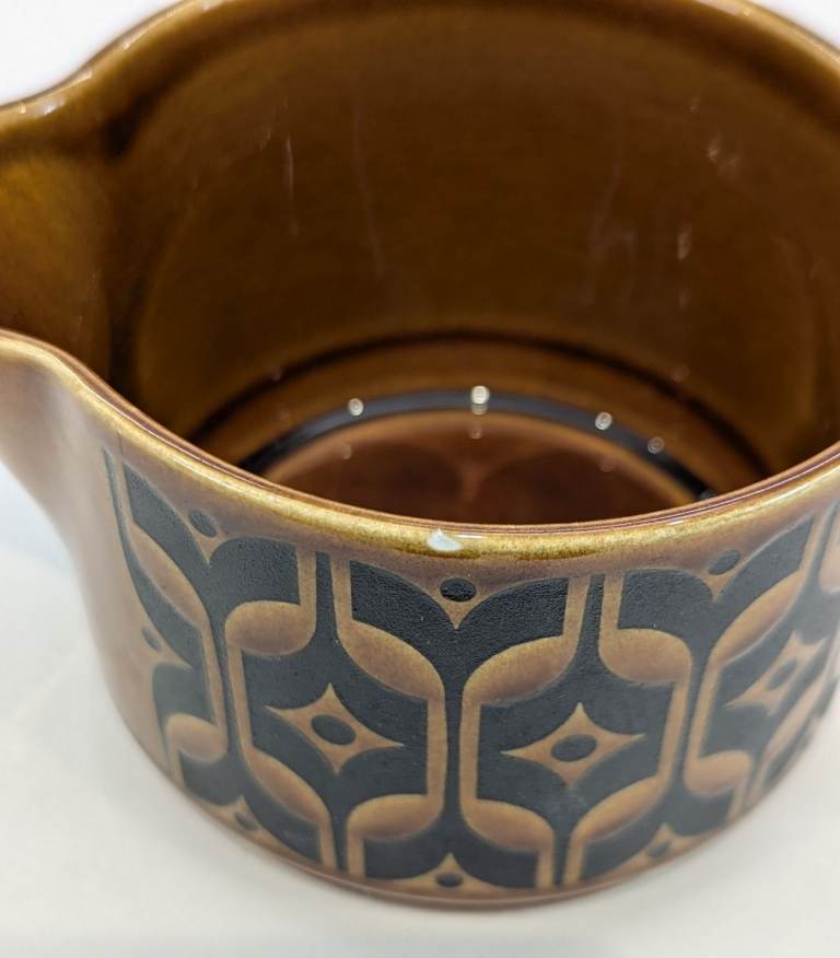 Hornsea Heirloom tableware was introduced in 1967 and is made from earthenware, a type of porcelain that is both delicate and durable. The iconic Heirloom pattern was designed by John Clappison and features a repeating design that was screen-printed onto the pottery.