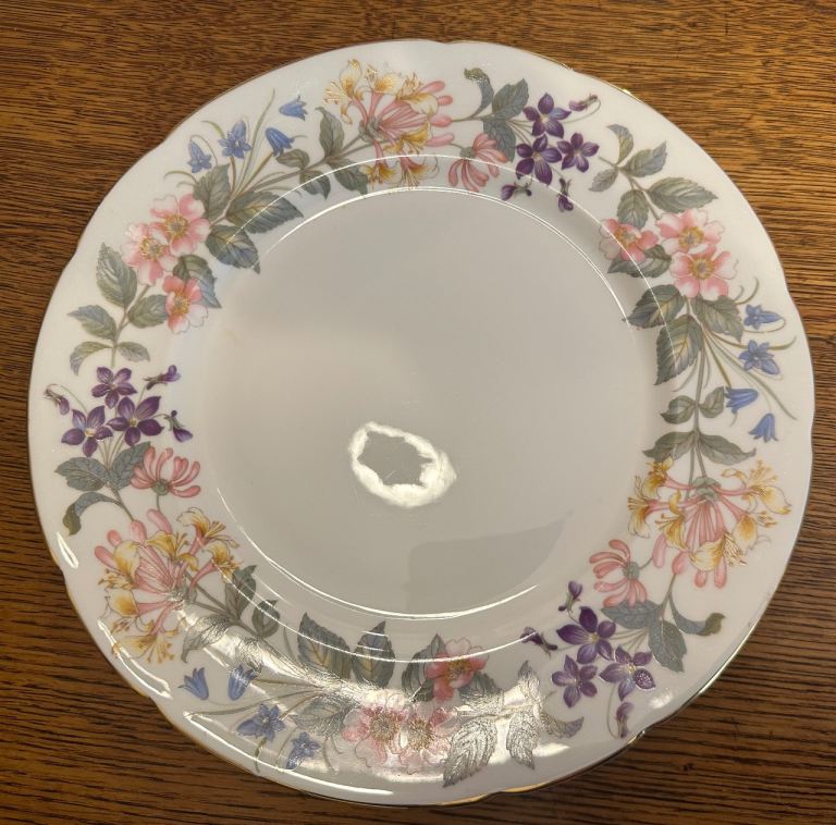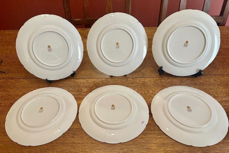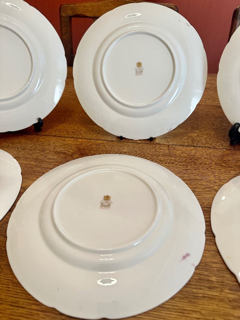 6 x 23cm plates two of which have firing cards on the back [see photos] but which do not detract from the pretty front pattern