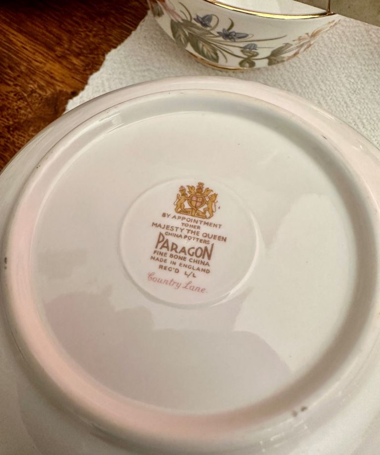 Paragon bone china ‘Country Lane’ will impress on that special occasion. This timeless design has a gilded rim enclosing a variety of flowers in shades of blue/ yellow/ pink and purple