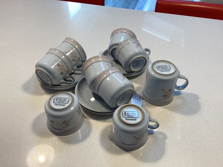 Rarely used and always hand washed so the gilding is bright and clear
