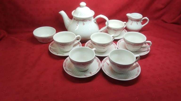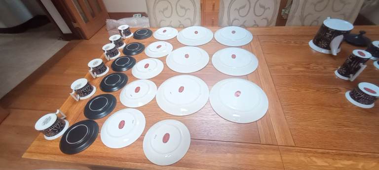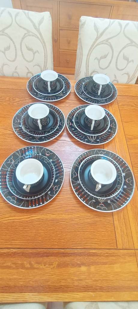 6 tea cups, 6 saucers, 6 tea plates, 6 dinner plates
