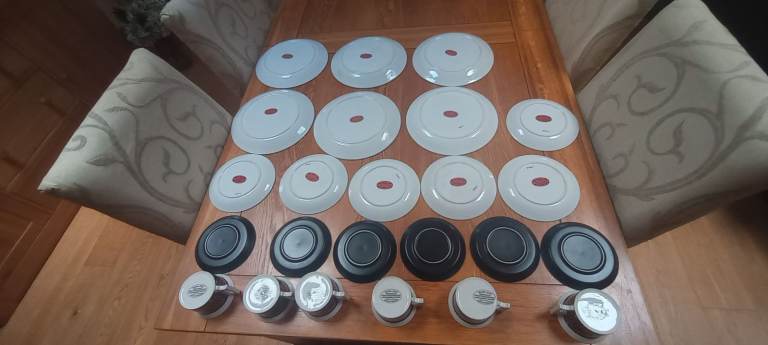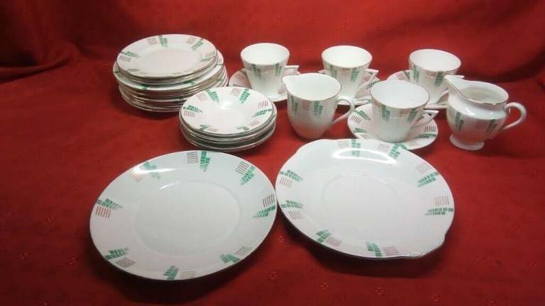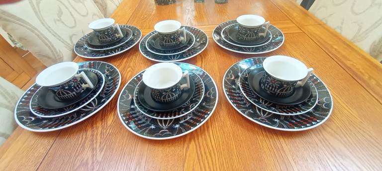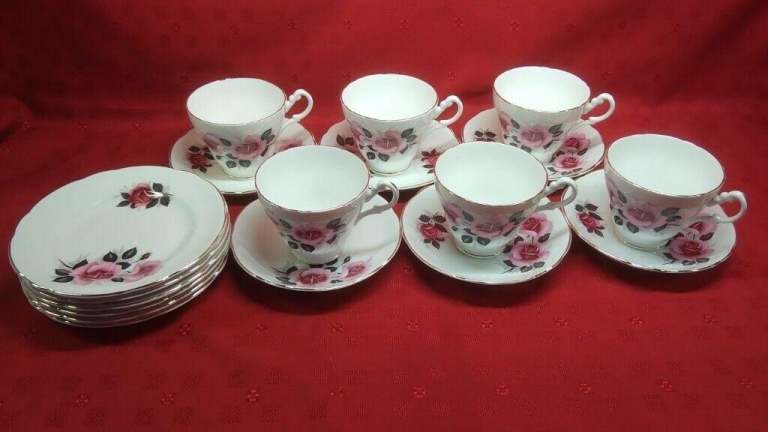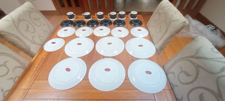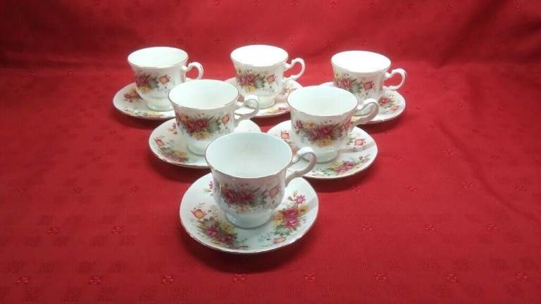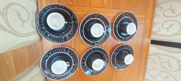 The 6 cups, 6 saucers, 6 small plates and 6 larger plates are all in very good condition with no cracks or chips