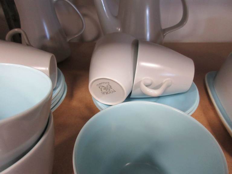 Vintage Retro Poole Pottery Vintage Coffee Set -Twin Tone Sky Blue and Dove Grey