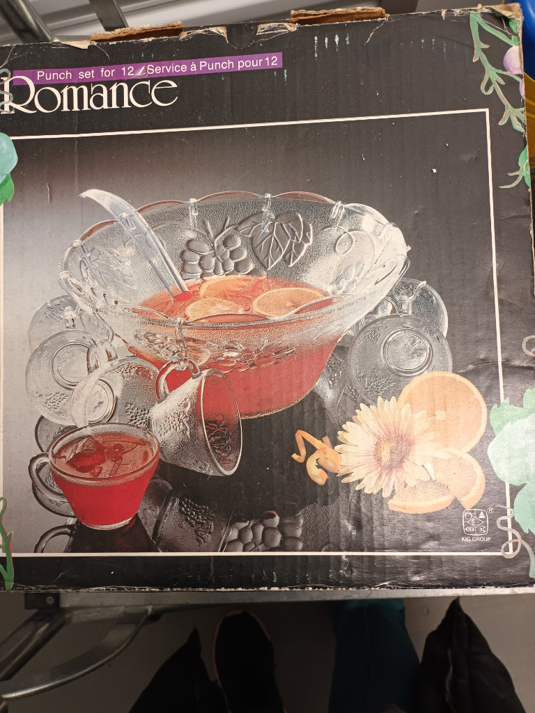 Vintage Romance 12 Cup Glass Punch Bowl Set. The ad is up so this item is still available