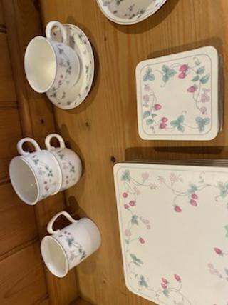 Posting for 9+ yearsVINTAGE-Royal Doulton Expressions 'Strawberry Fayre' 67 Piece Dinner & Tea Set, placemats, coasters