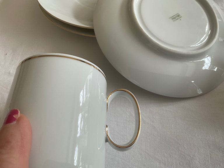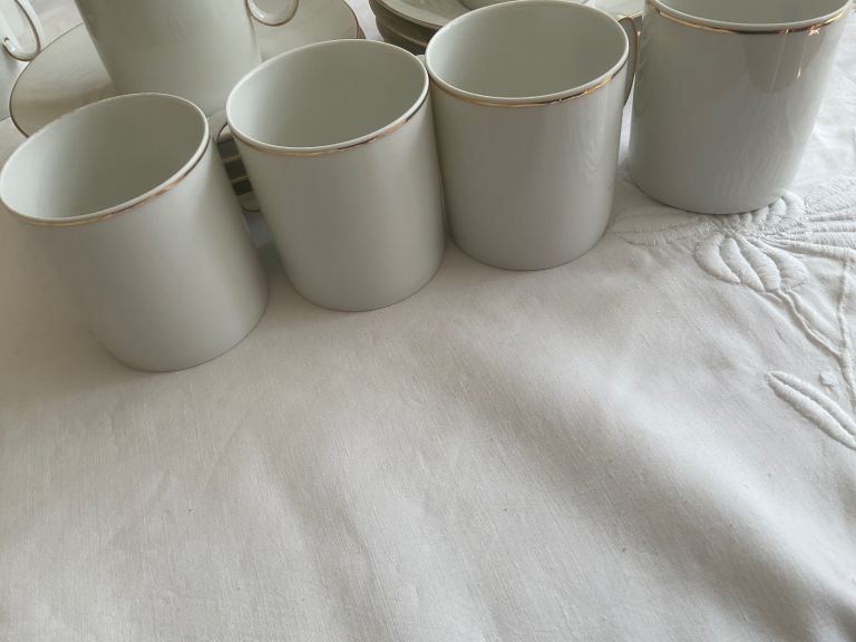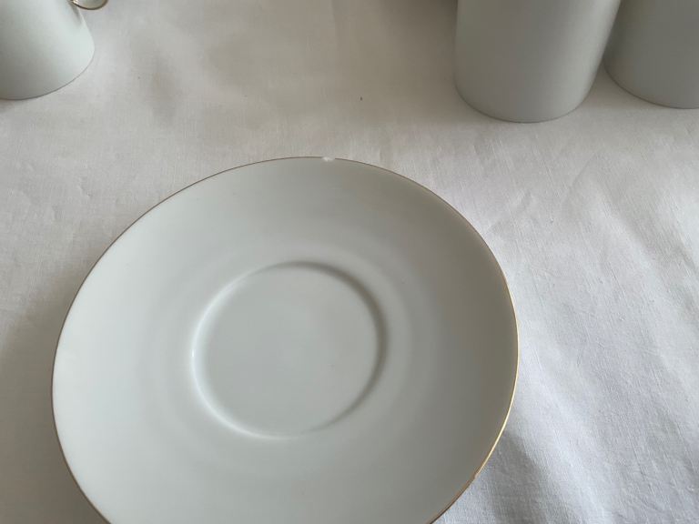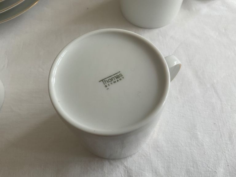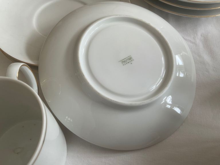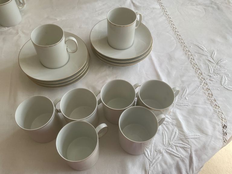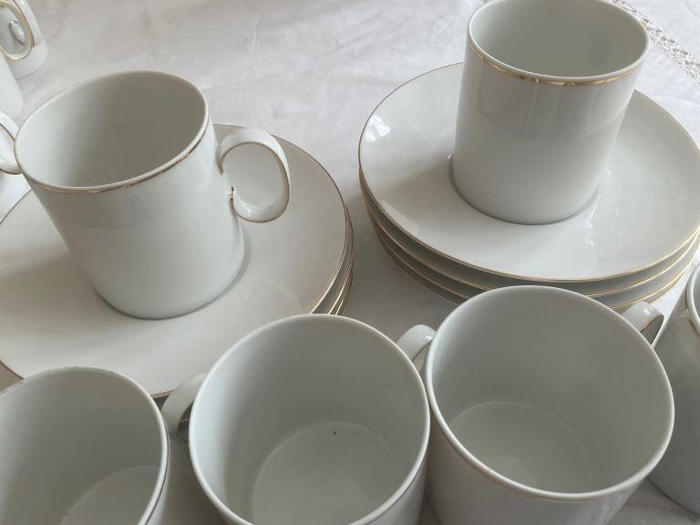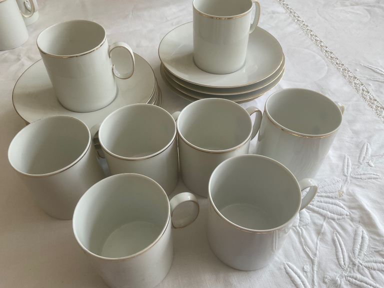 Vintage set of 8 cups & saucers in white with gold edging by Thomas China ( Germany)