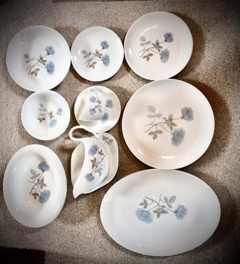 Immaculate Wedgwood Ice Rose 8 settings of dinner (2 sizes), side, dessert plates, soup, cups & saucer plus two serving dishes, serving plate and sauce boat and saucer. Dishwasherproof. Local collection or could arrange delivery within reasonable distance.