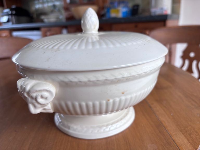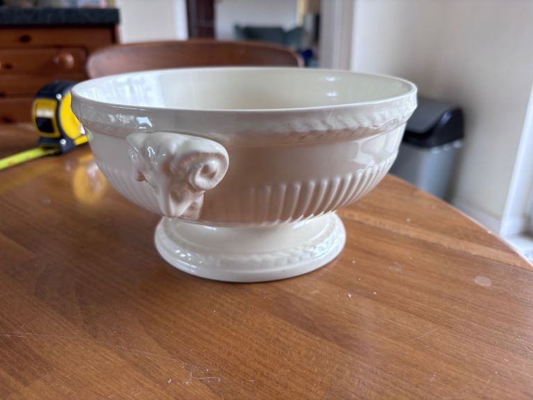 2 Rams Head Vegetable terrines on plinth ( 1 with lid, 1 without lid)