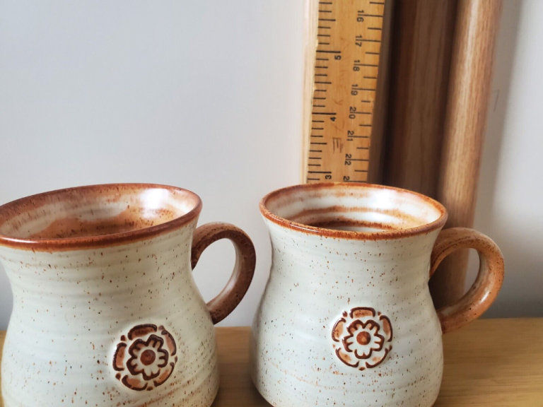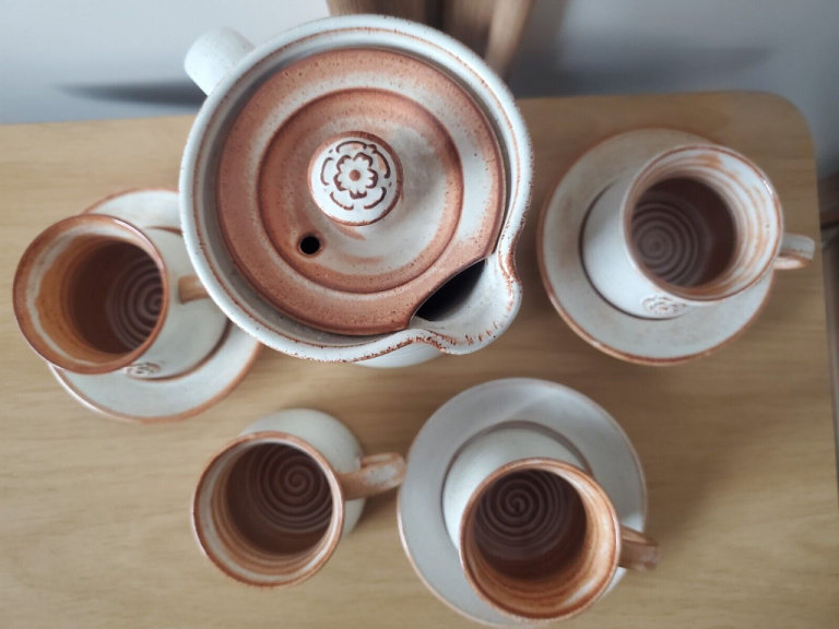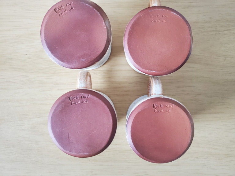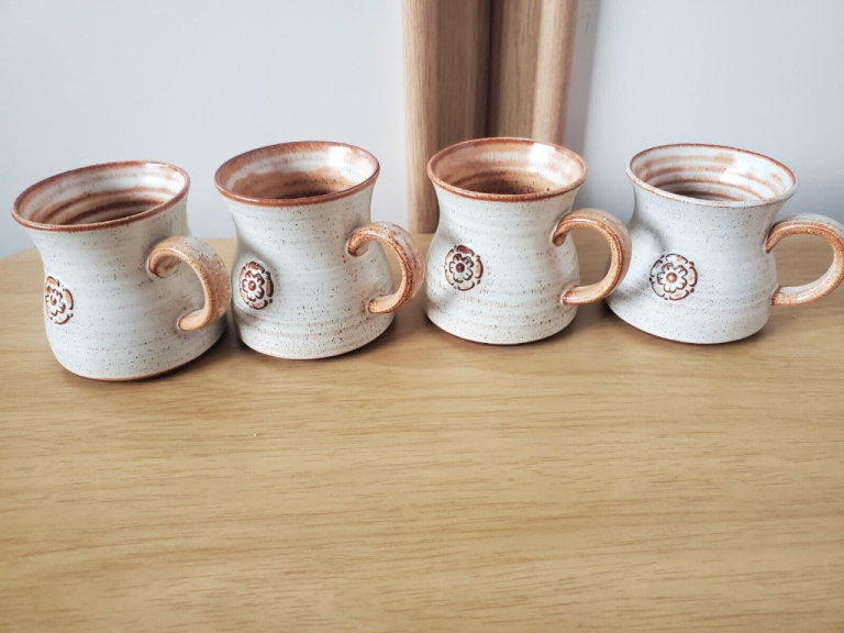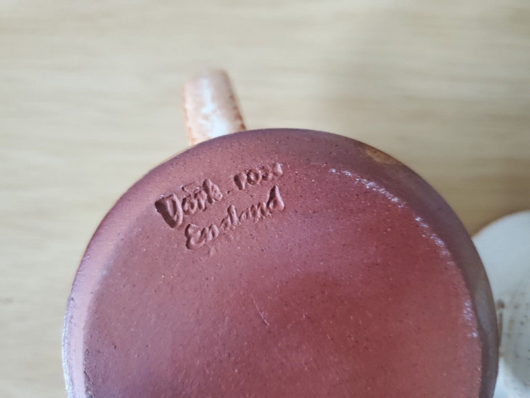 YORK ROSE POTTERY - JUG - WITH LID - 4 MUGS AND 3 SAUCERS - PLEASE SEE PICTURES