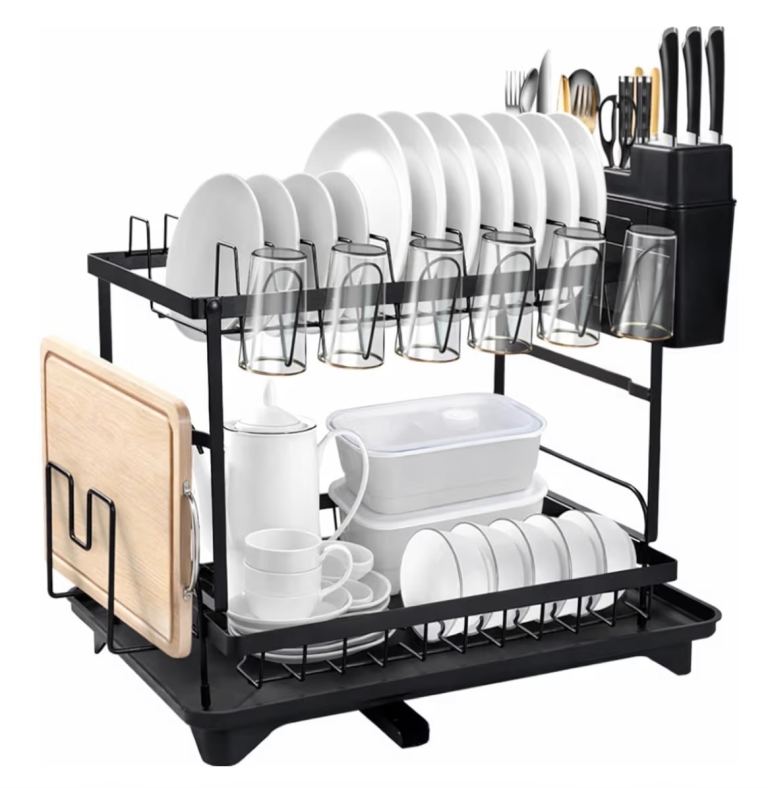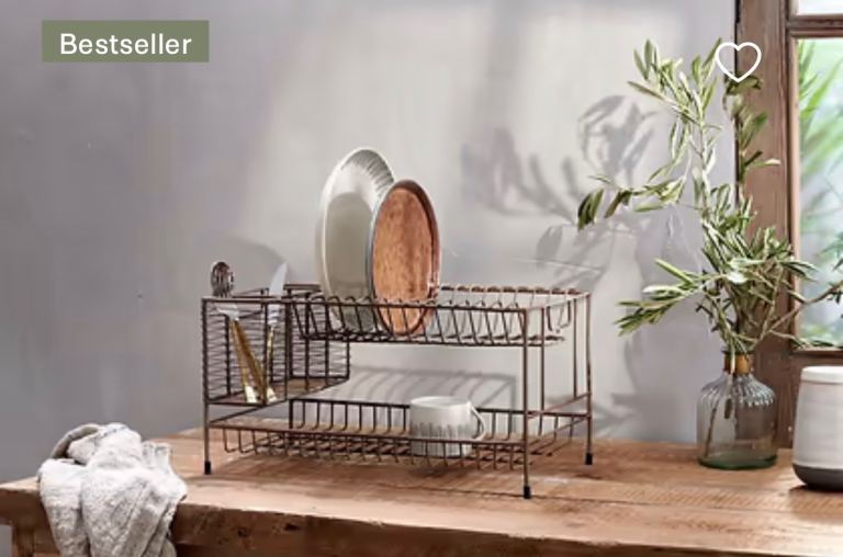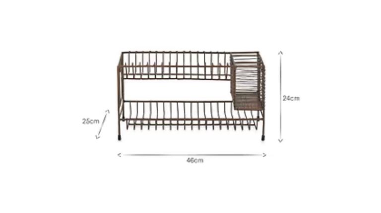 This is a high-quality, stylish dish rack made from metal with a timeless, rustic look that suits modern or traditional kitchens. Practical for everyday use while also looking great on the worktop.