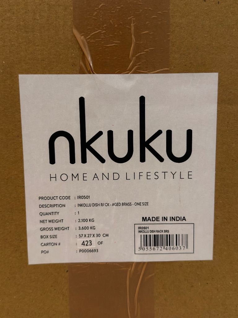 Brand new and never used Nkuku Inkollu dish rack in the beautiful aged brass finish.