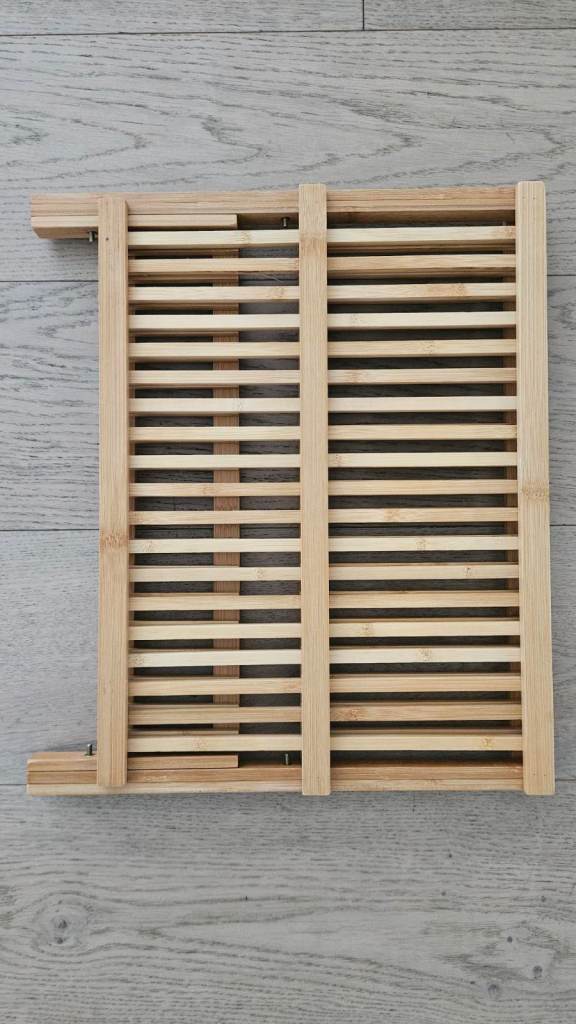 The dish rack is made from bamboo, a highly weather-proof and moisture-resistant material.