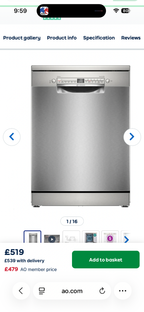 Lovely black dishwasher, 18 months old, and as good as new.