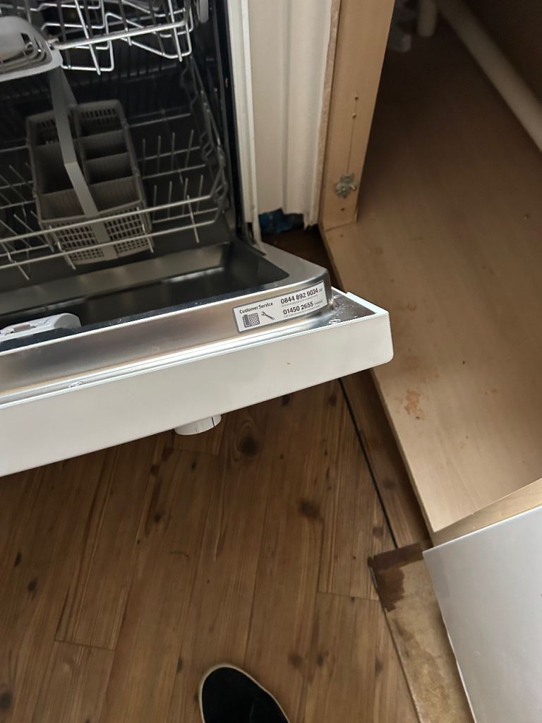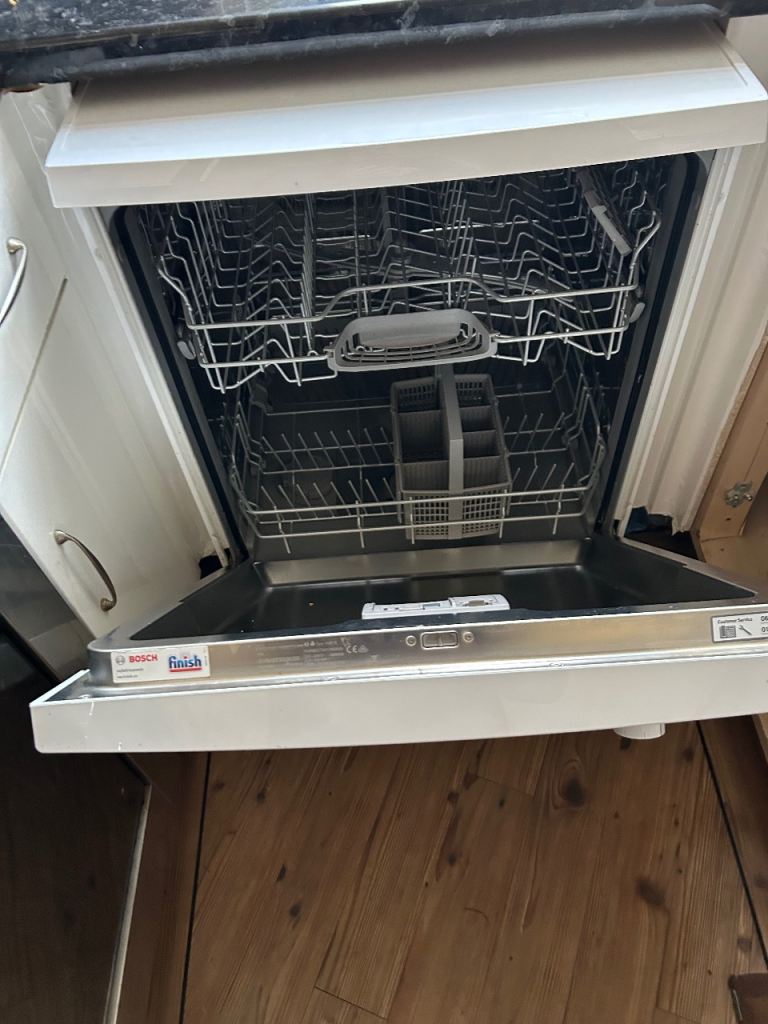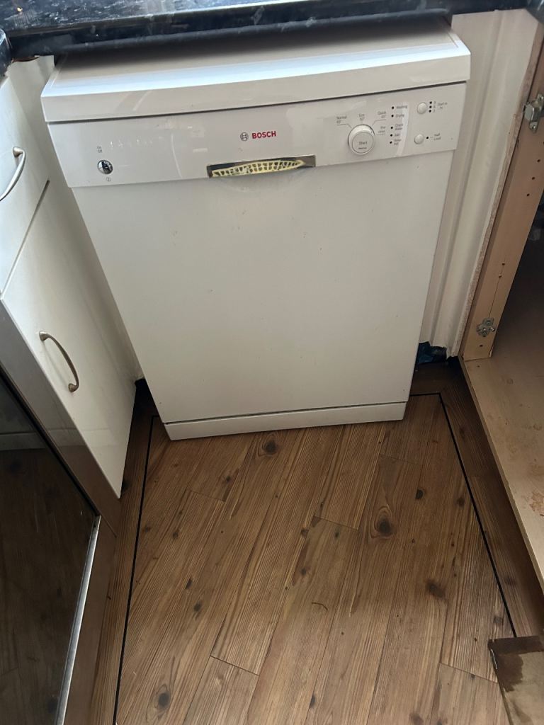 White under counter full size free standing dishwasher in nearly new condition. In excellent working condition, new fitted kitchen forces sale. £150. Buyer uplifts