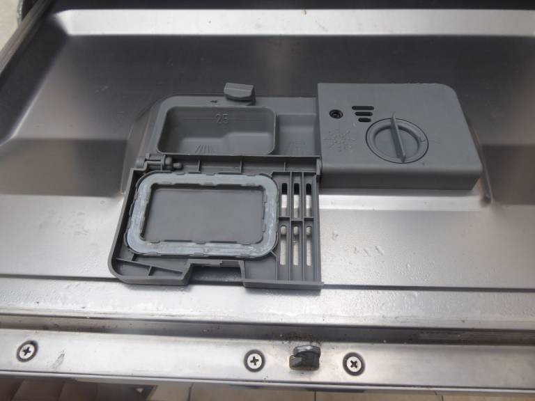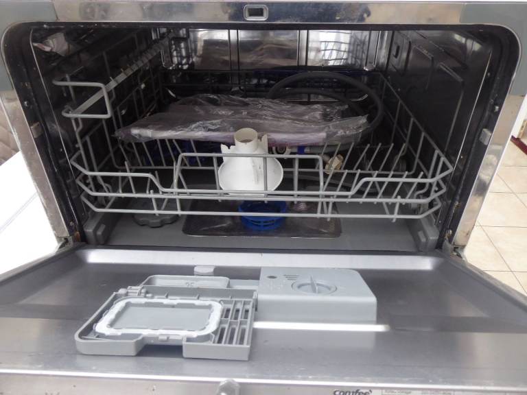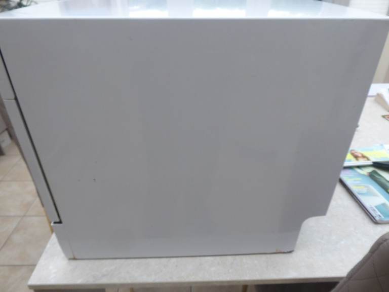 Table top dishwasher. The cutlery basket in the dishwasher is not the original and is slightly bigger.