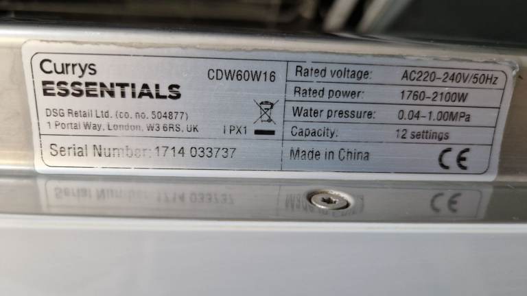 MAKE & MODEL - CURRYS CDW60W16