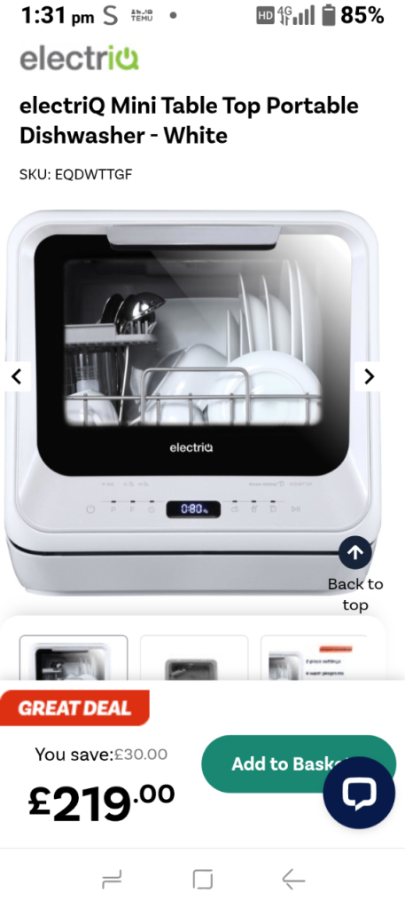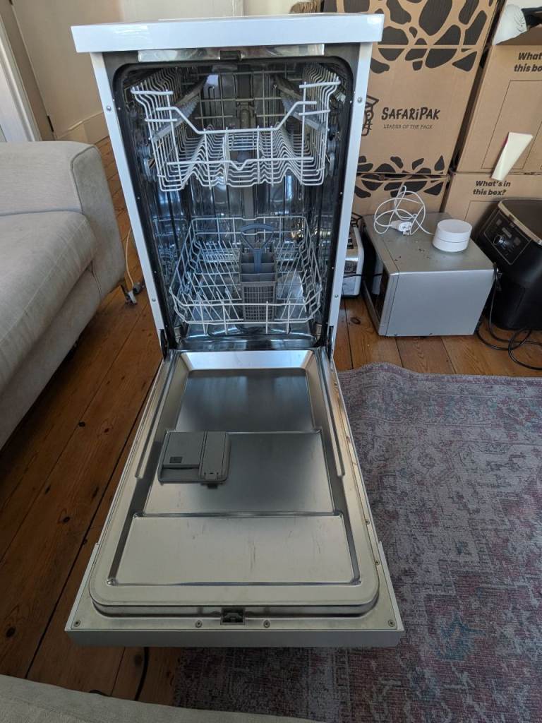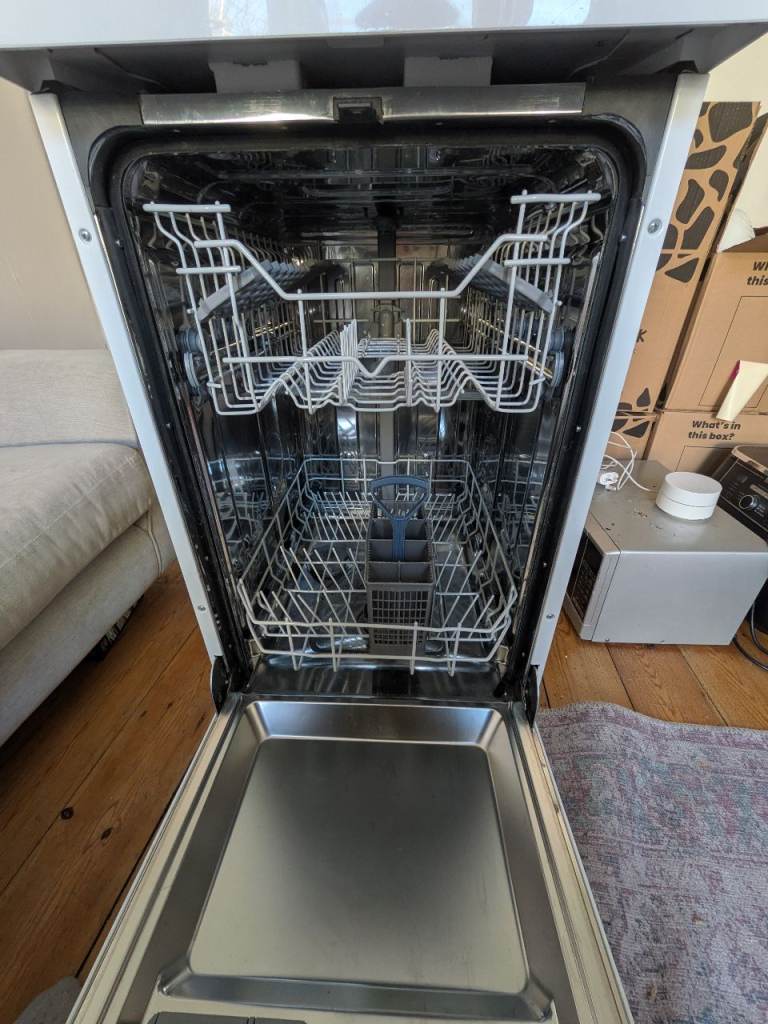 Electra C1745WE Slimline Dishwasher - White. (H)85.0 x (W)45.0 x (D)59.8. Residual heat drying and quick wash features. In great condition. Only replacing as getting a new kitchen with integrated appliances. Drain Hose Length 1.47 m. Power Cable Length 165 cm.