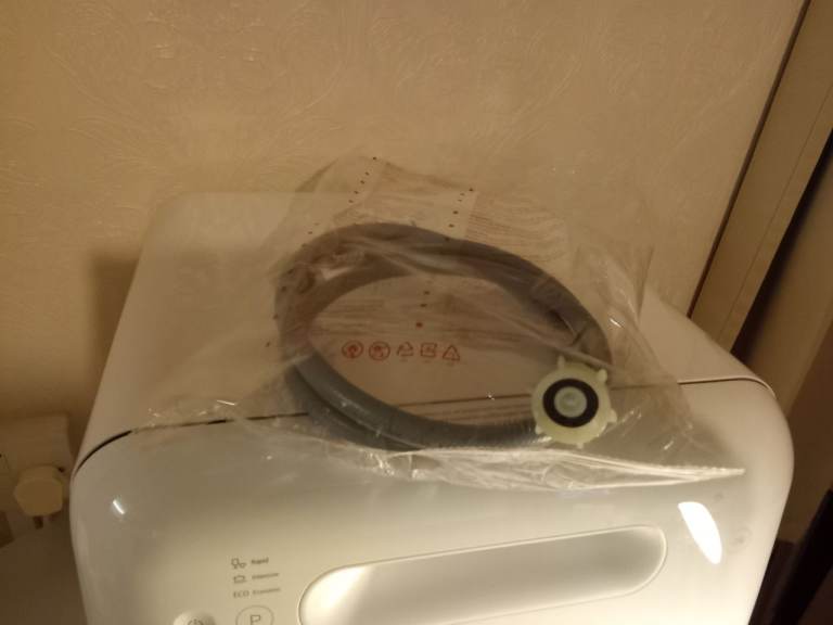 Works perfectly, move forces sale. Inlet hose never used. Beeps when enough water is poured in through the top.