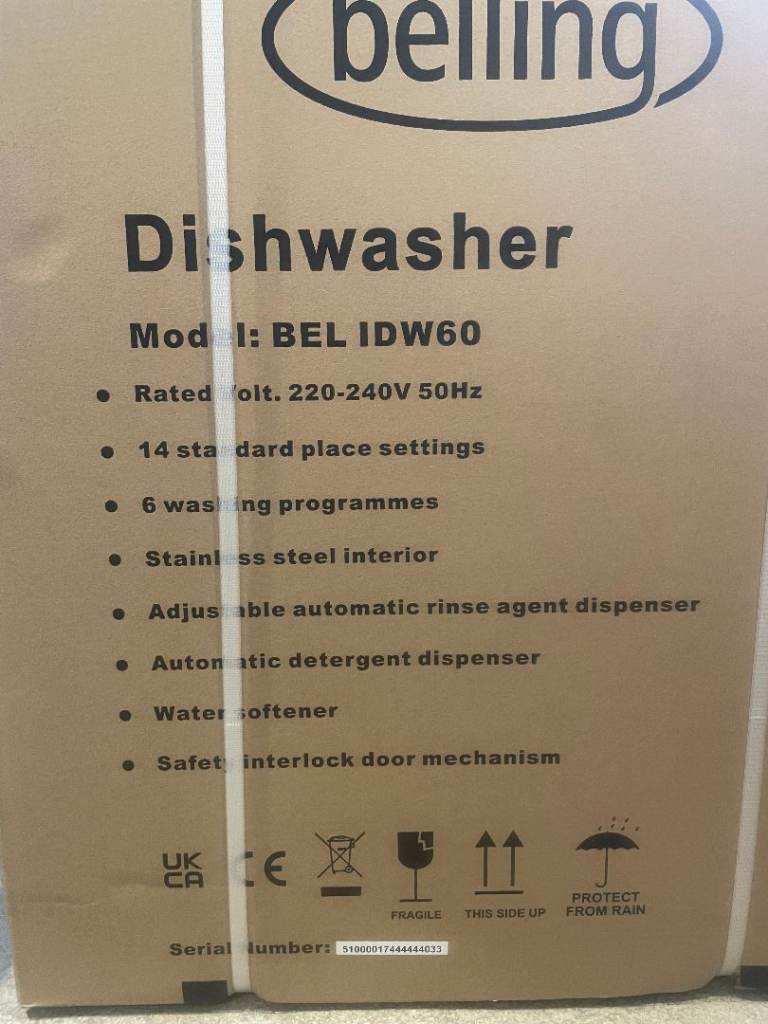 New Belling 60cm Integrated Dishwasher