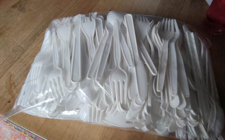 Plastic knives, forks and spoons