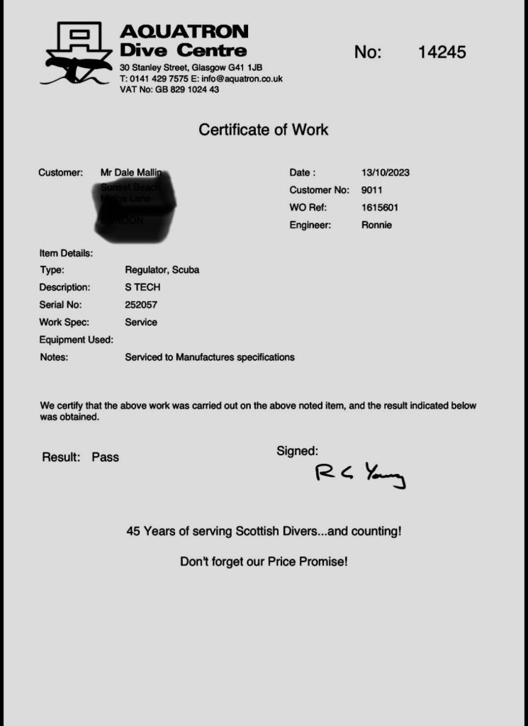 They were serviced via Aquatron Glasgow in October 2023 and have only been used a few times whilst doing pool sessions.